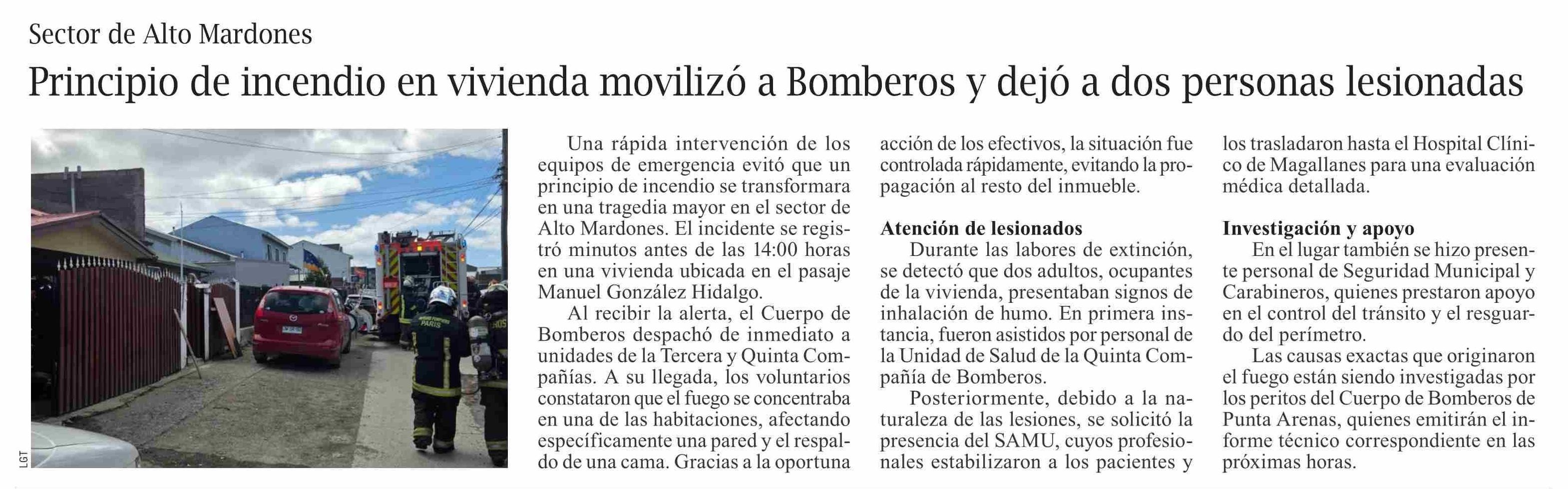 | Título: | Principio de incendio en vivienda movilizó a Bomberos y dejó a dos personas lesionadas |