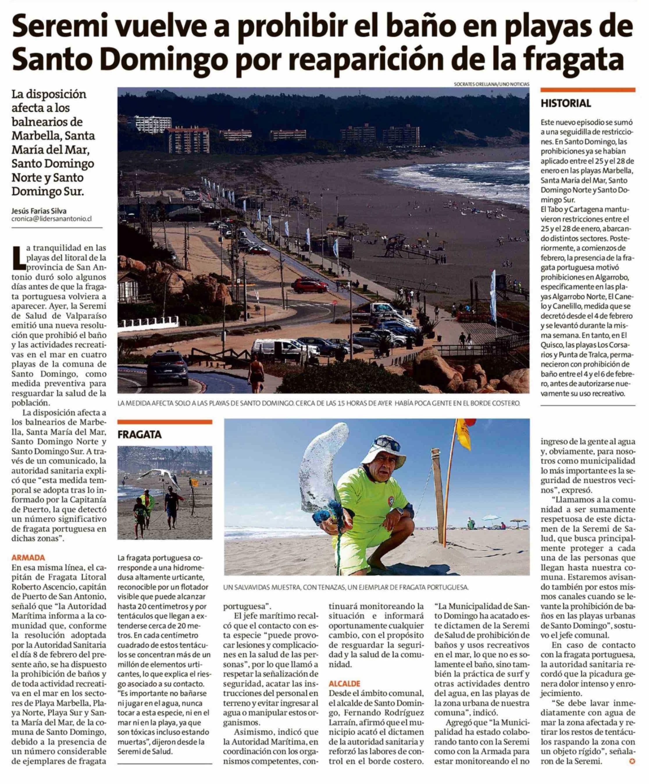 Título: Seremi vuelve a prohibir el baño en playas de Santo Domingo por reaparición de la fragata