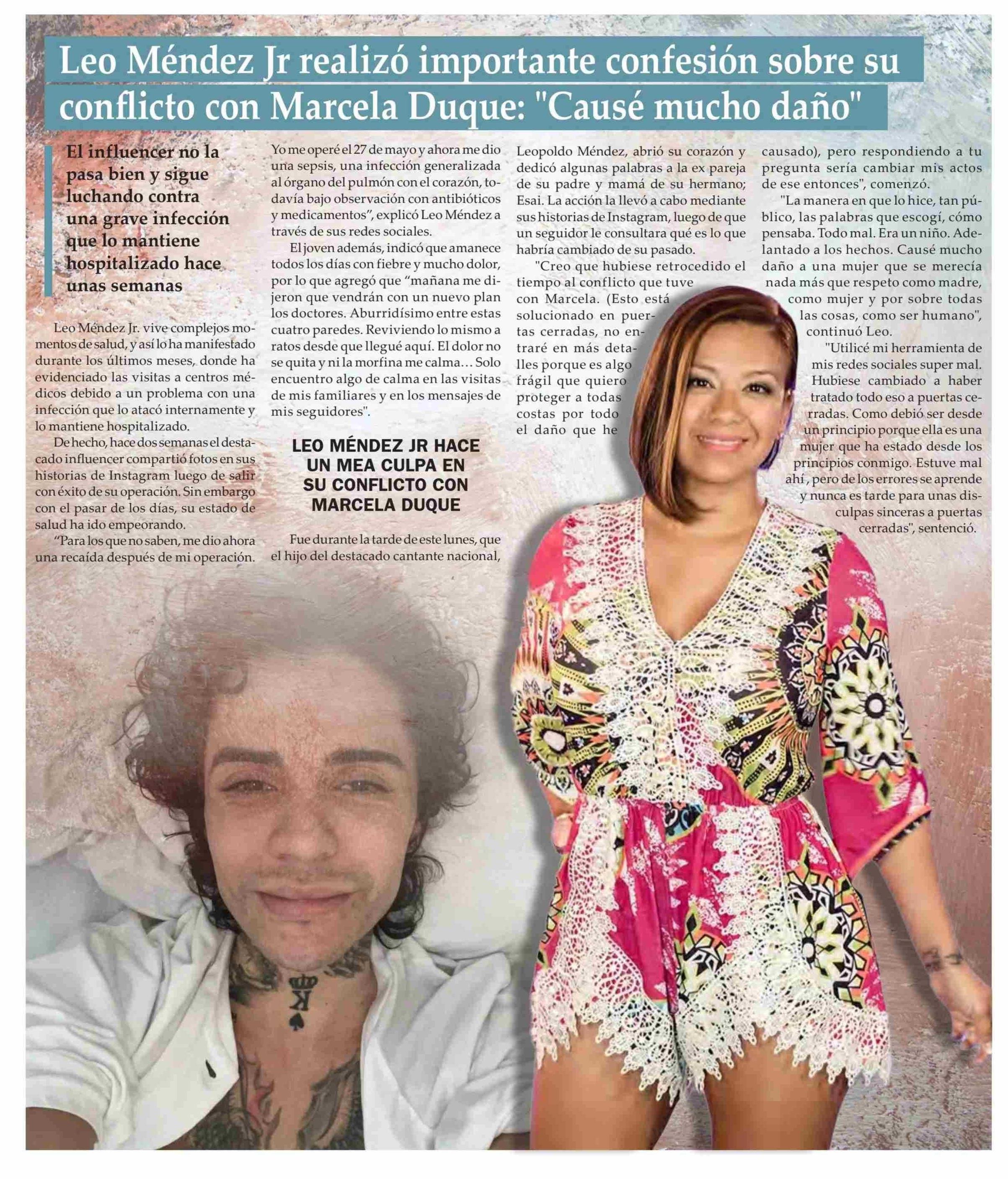 | Título: | Leo Méndez )!r realizó impórtante confesión sobre su conflicto con Marcela Duiue: “Causé mucho daño” |