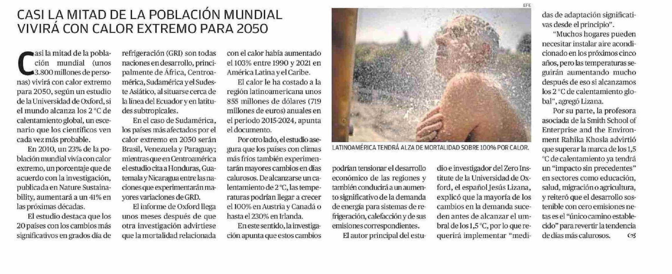 | Título: | CASI LA MITAD DE LA POBLACIÓN MUNDIAL VIVIRÁ CON CALOR EXTREMO PARA 2050 |