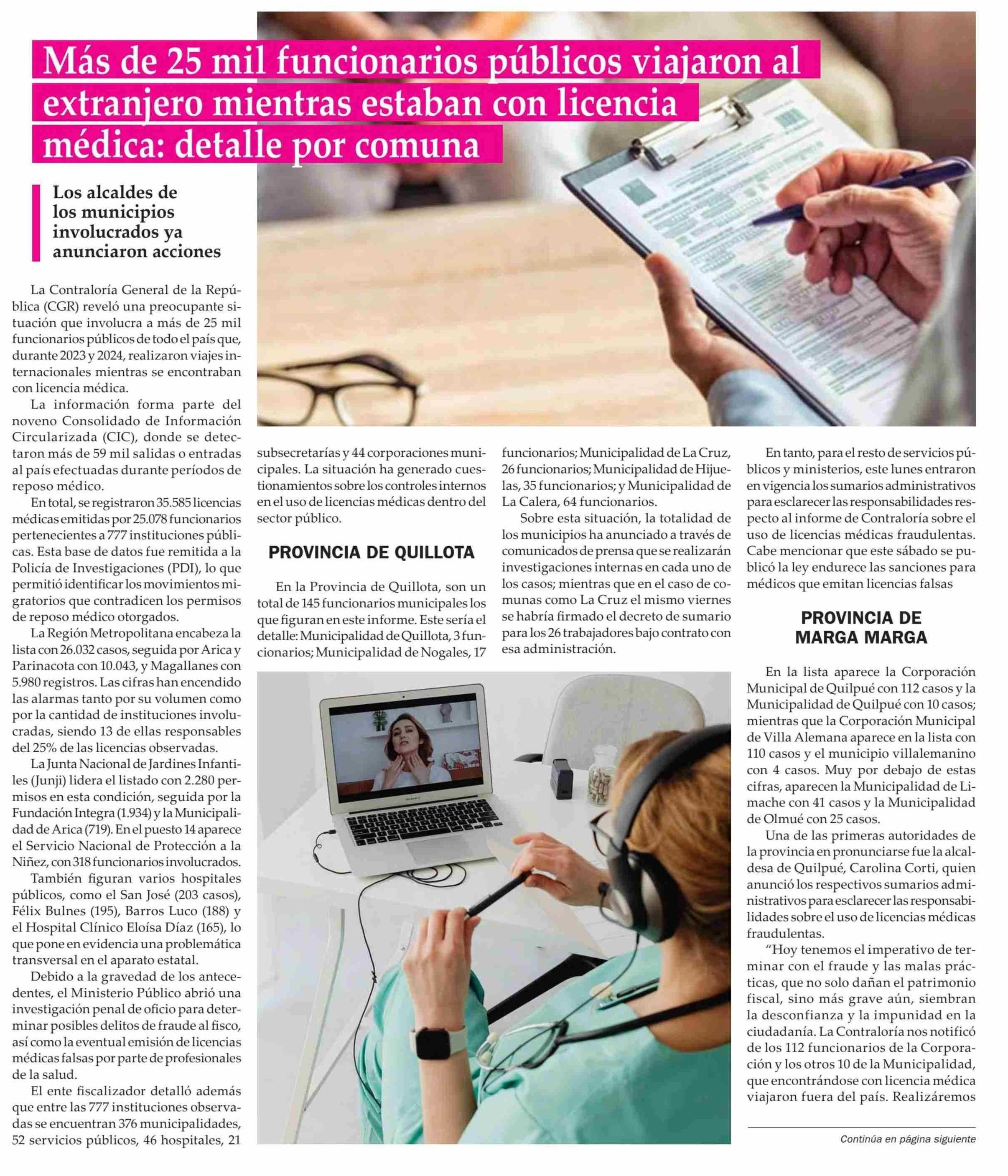 Más de 25 mil funcionarios públicos viajaron al extranjero mientras estaban con licencia médica: detalle por comuna 26-05-2025 El Observador Vespertino |