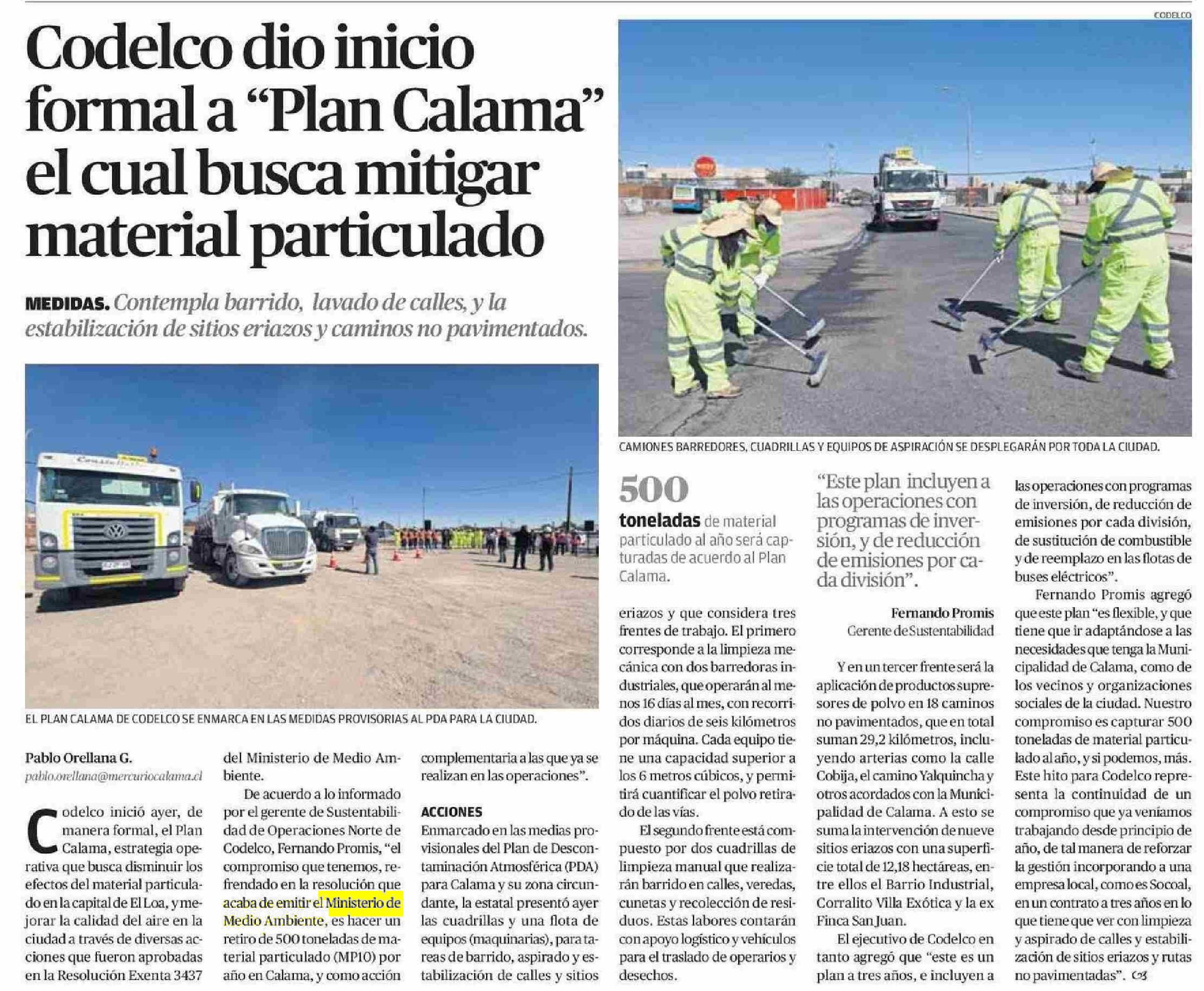 Codelco dio inicio formal a “Plan Calama” el cual busca mitigar material particulado 30-05-2025 El Mercurio de Calama |