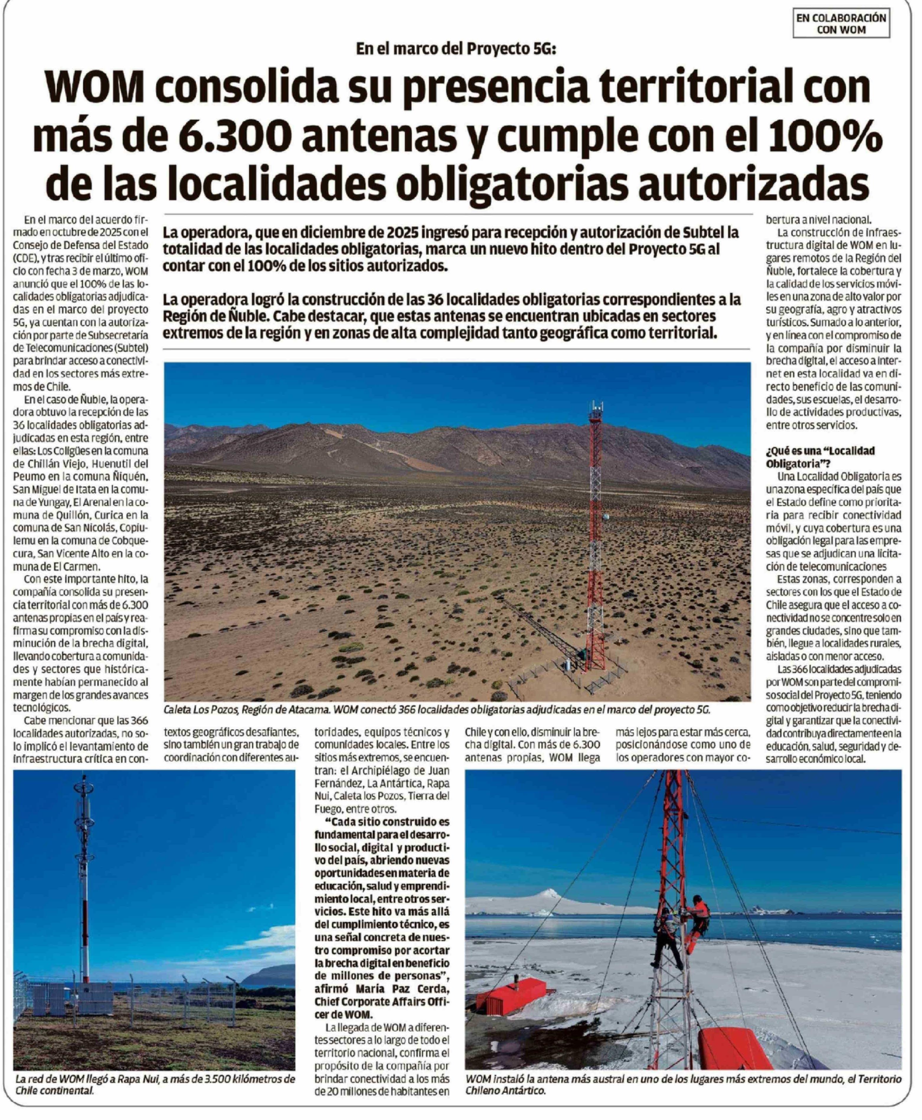 Título: WOM consolida su presencia territorial con más de 6.300 antenas y cumple con el 100% de las localidades obligatorias autorizadas
