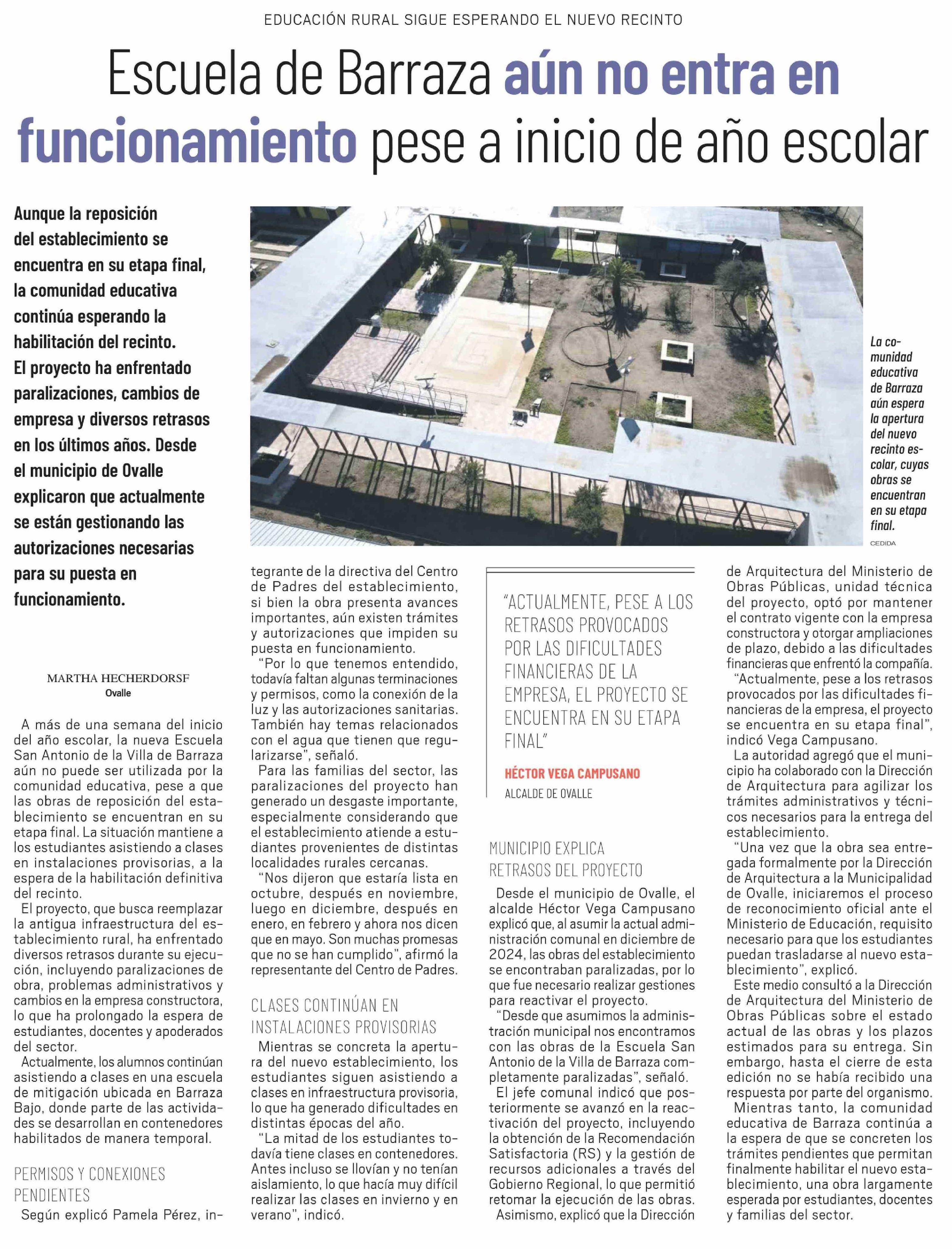 Escuela de Barraza aún no entra en funcionamiento pese a inicio de año escolar 17-03-2026 El Ovallino |