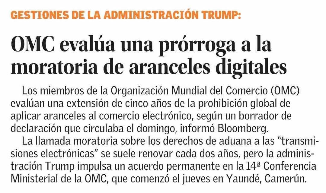 Título: OMC evalúa una prórroga a la moratoria de aranceles digitales