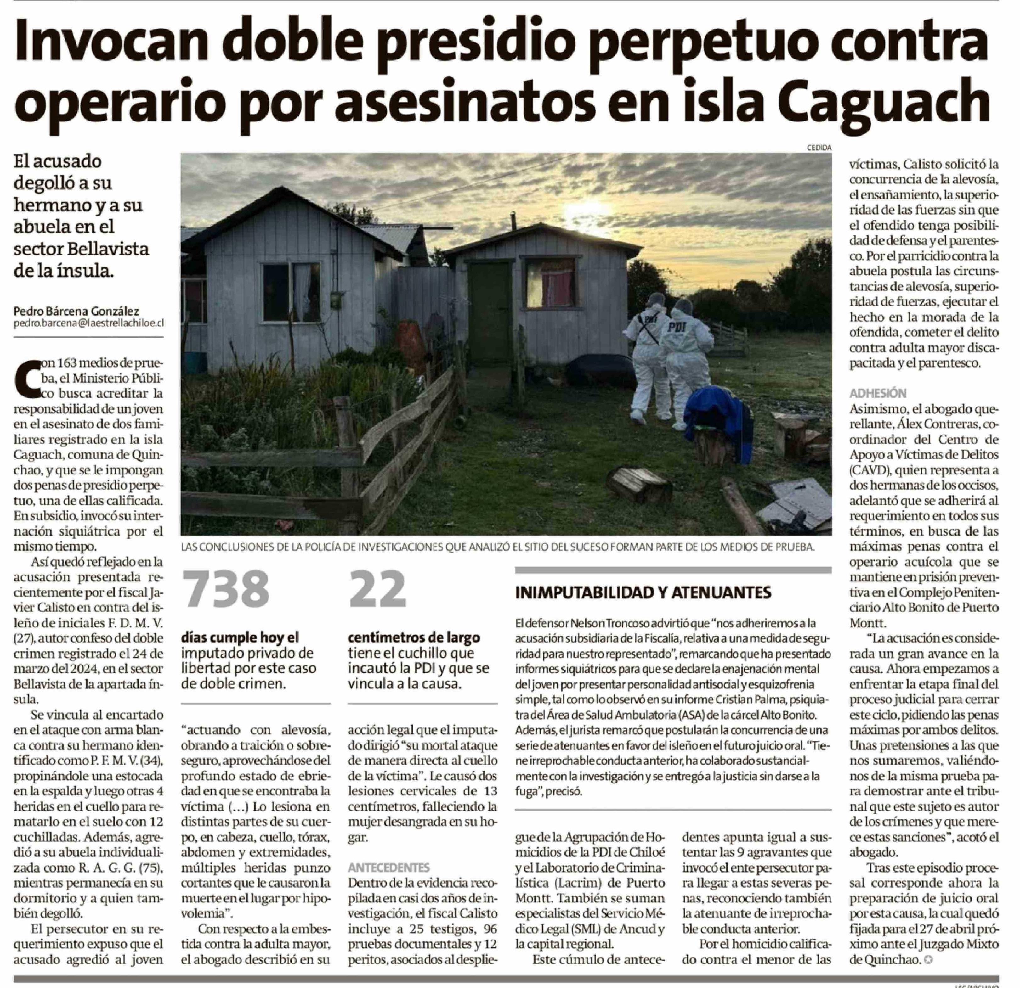 Invocan doble presidio perpetuo contra operario por asesinatos en isla Caguach 02-04-2026 La Estrella de Chiloé |