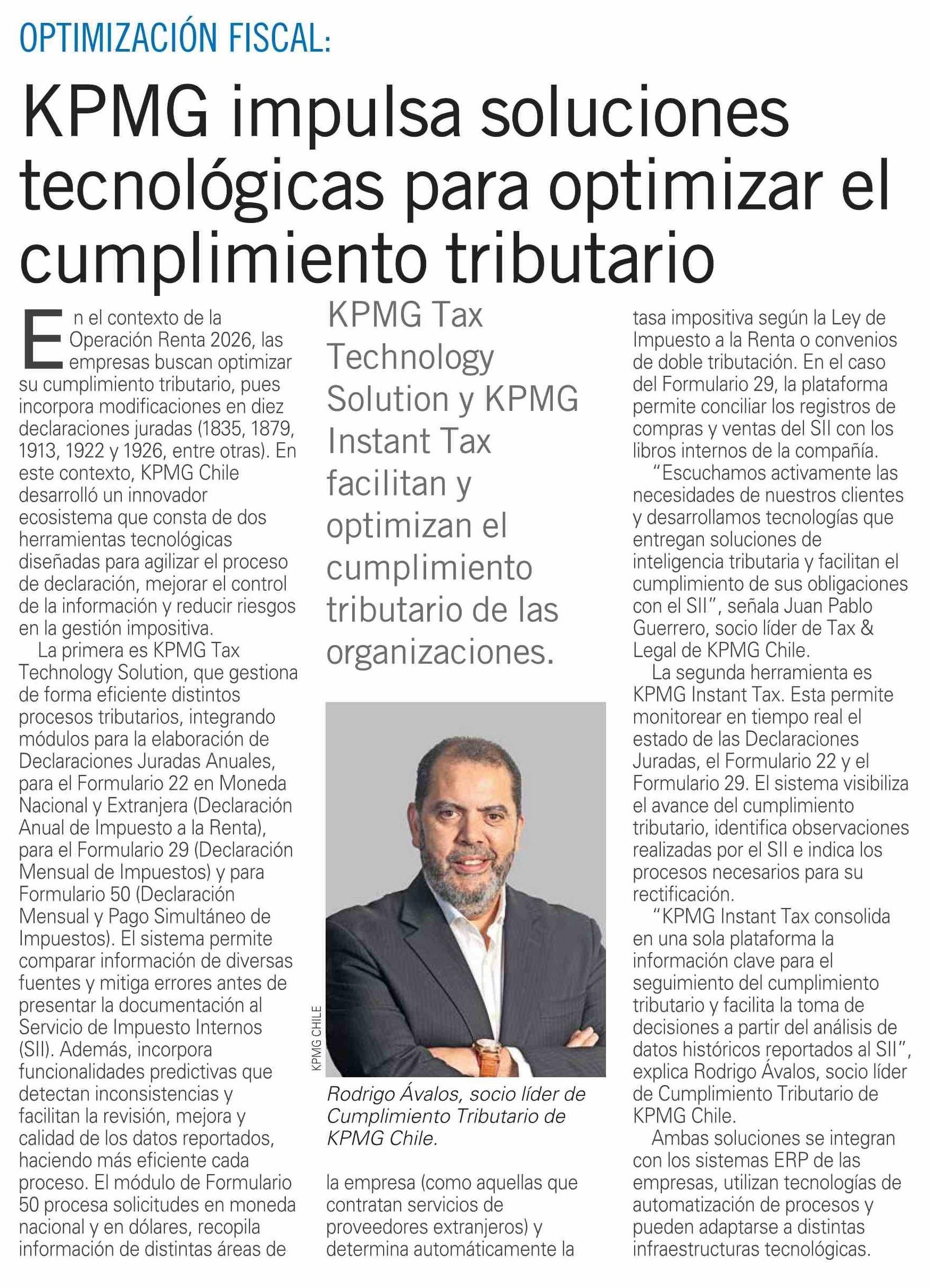 Título: KPMG impulsa soluciones tecnológicas para optimizar el cumplimiento tributario