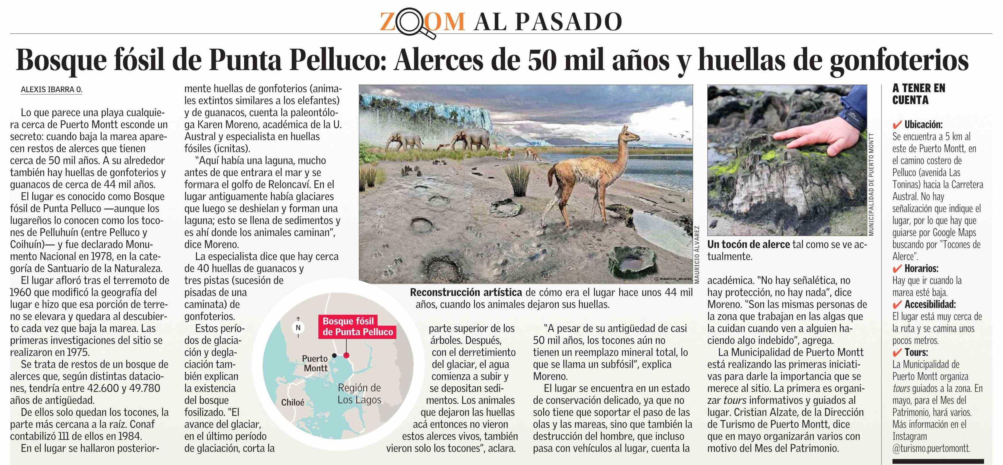 Título: Bosque fósil de Punta Pelluco: Alerces de 50 mil años y huellas de gonfoterios