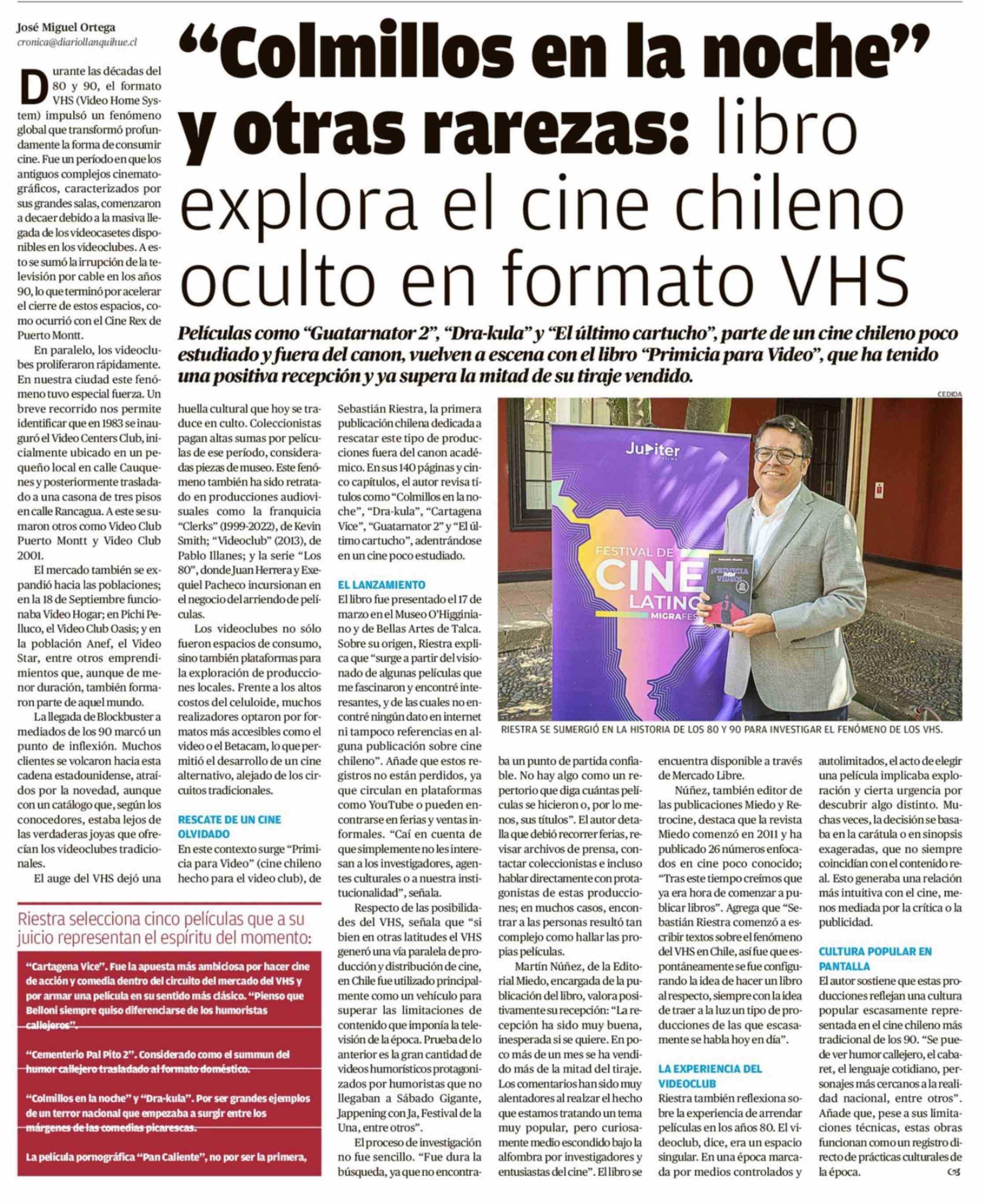 "Colmillos en la noche" y otras rarezas: libro explora el cine chileno oculto en formato VHS 05-04-2026 El Austral de Osorno |