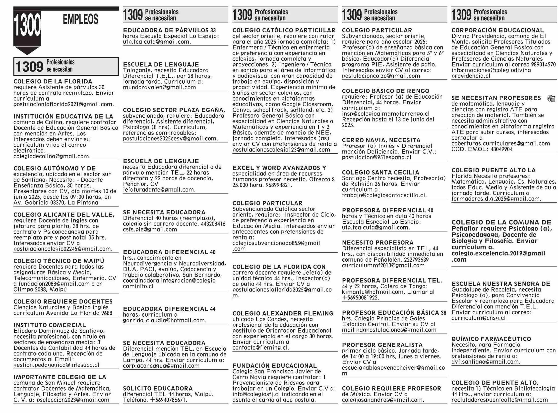 LICITACIONES: Profesionales área educación 08-06-2025 El Mercurio |