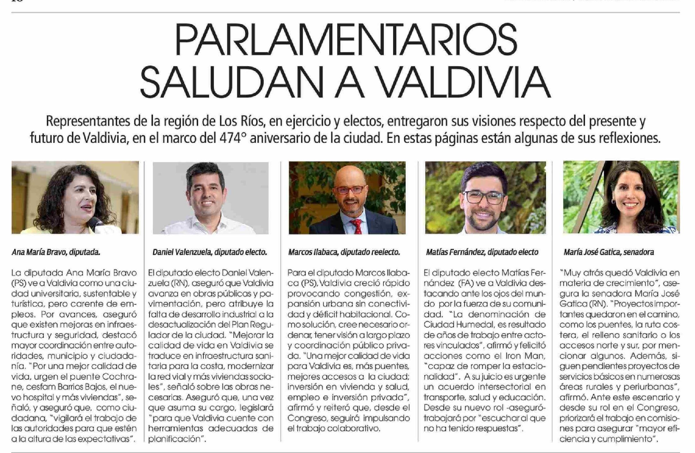 PARLAMENTARIOS SALUDAN A VALDIVIA 28-02-2026 Diario Austral Región de Los Ríos |