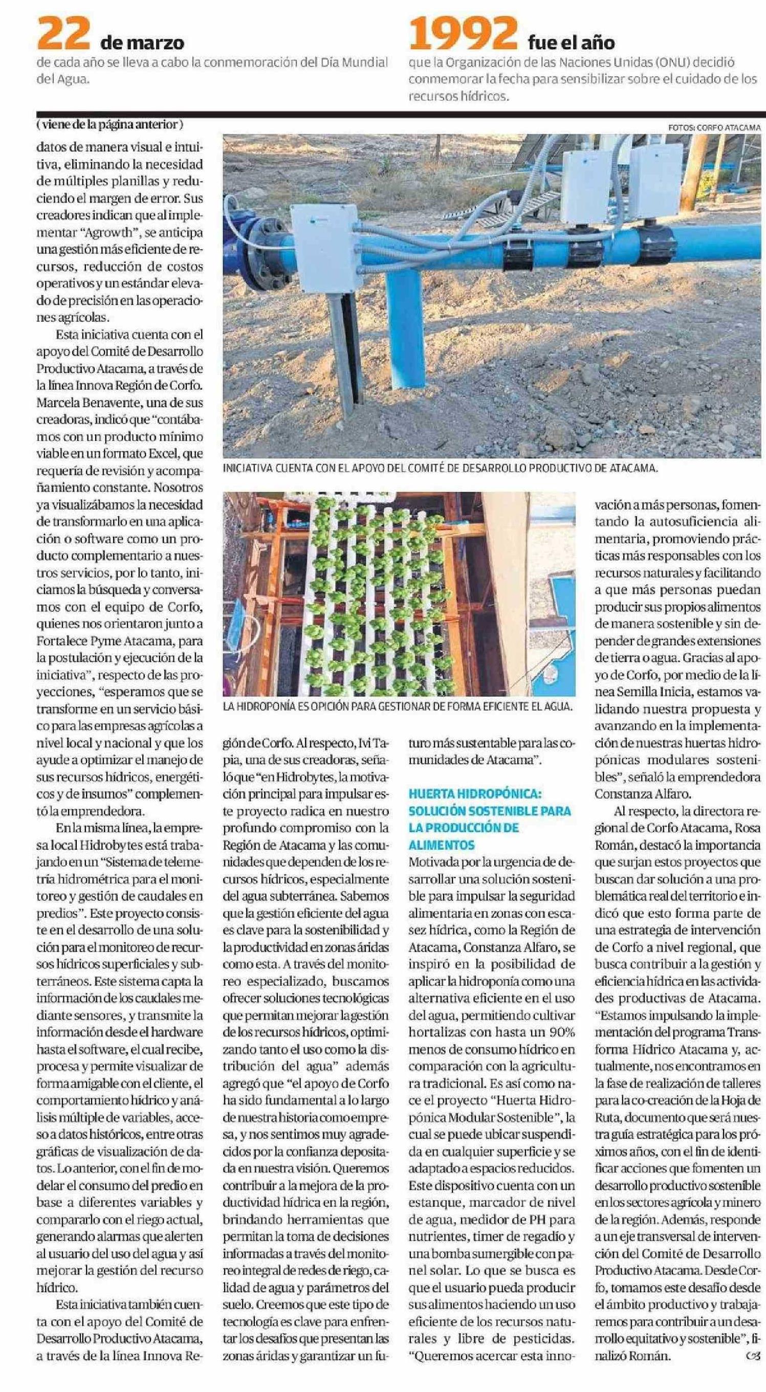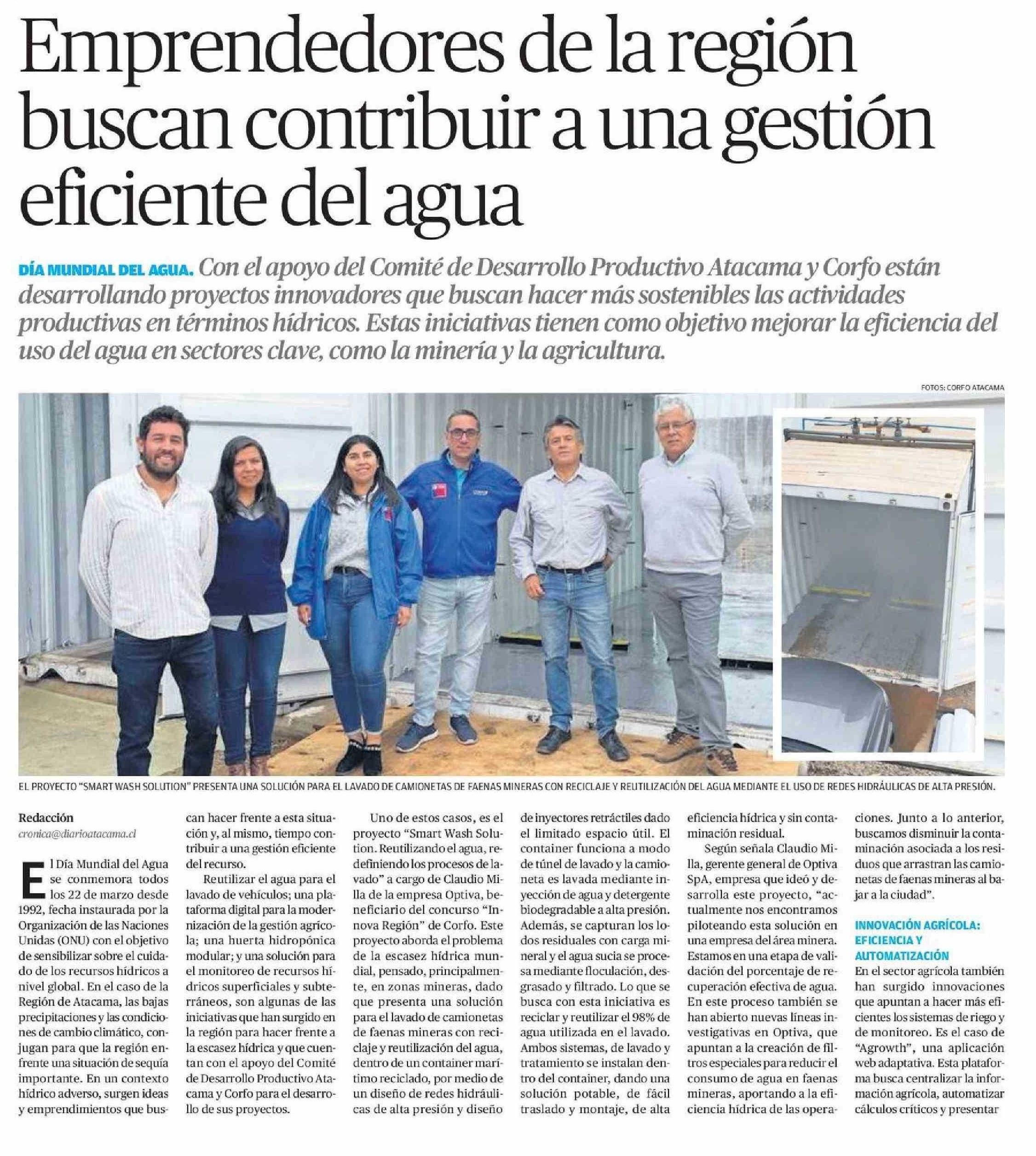 Emprendedores de la región buscan contribuir a una gestión eficiente del agua 23-03-2025 El Diario de Atacama |