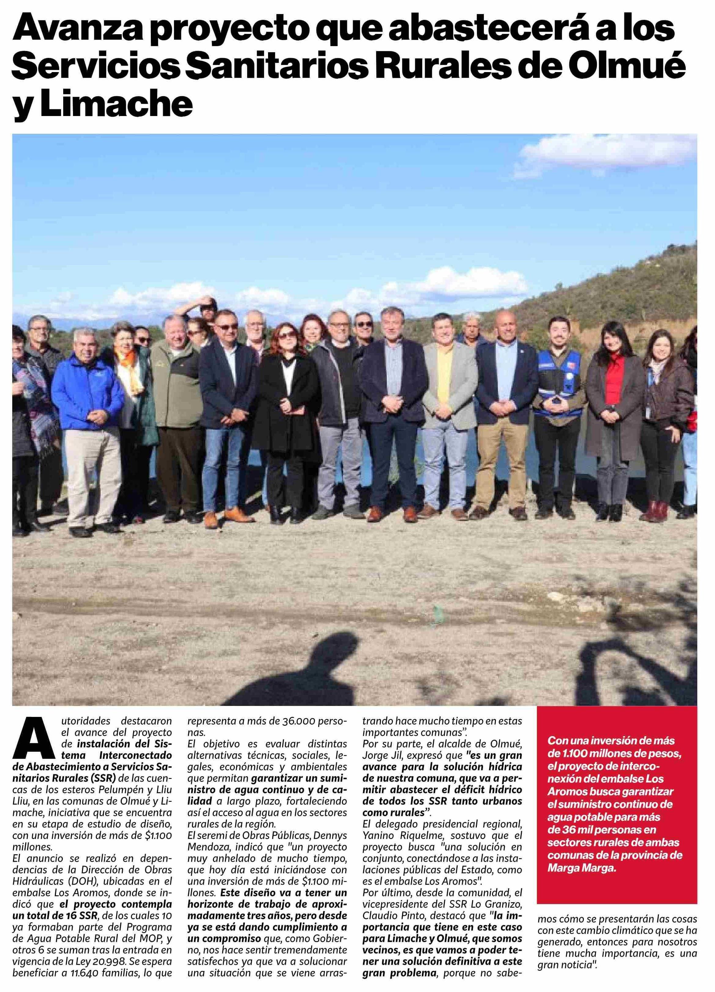 Avanza proyecto que abastecerá a los Servicios Sanitarios Rurales de Olmué y Limache 17-06-2025 Puranoticia.cl |