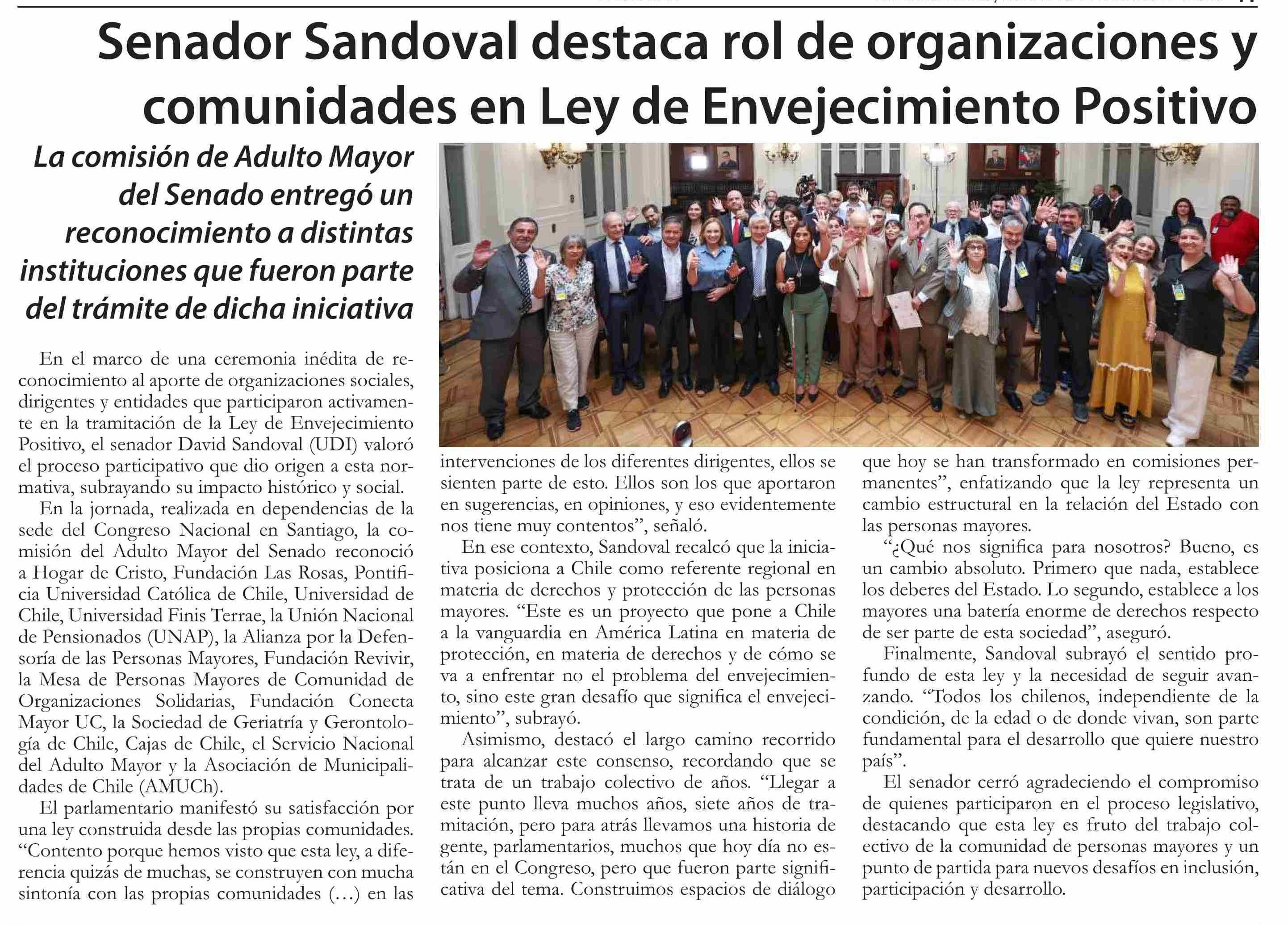 Senador Sandoval destaca rol de organizaciones y comunidades en Ley de Envejecimiento Positivo 26-01-2026 El Divisadero |