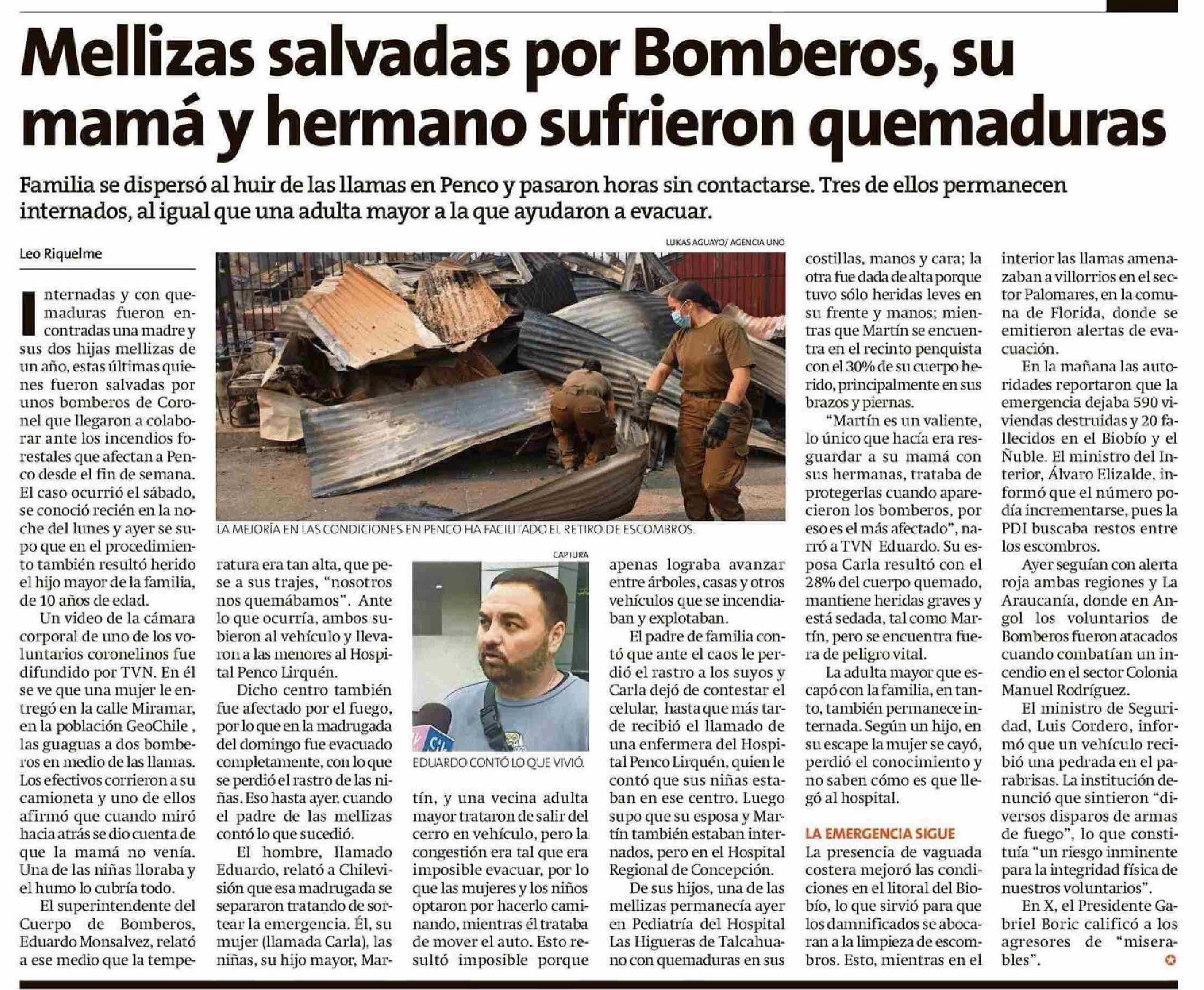 | Título: | Mellizas salvadas por Bomberos, su mamá y hermano sufrieron quemaduras |
