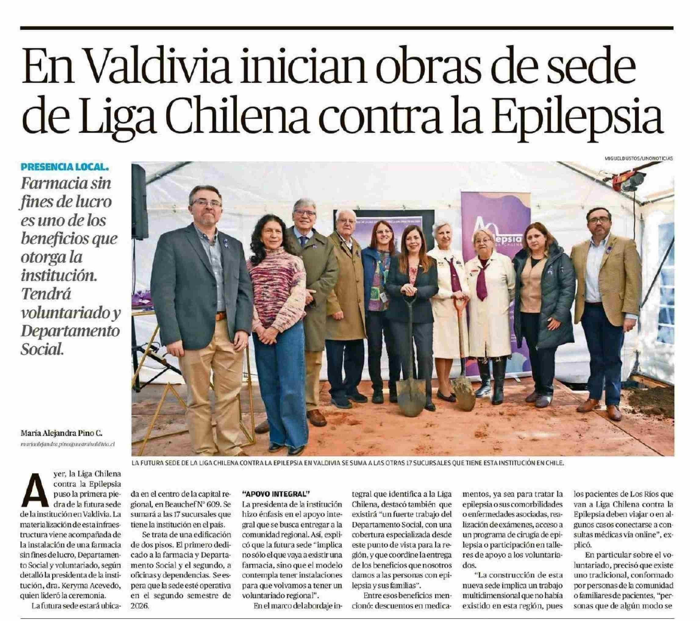 En Valdivia inician obras de sede de Liga Chilena contra la Epilepsia 27-05-2025 Diario Austral Región de Los Ríos |