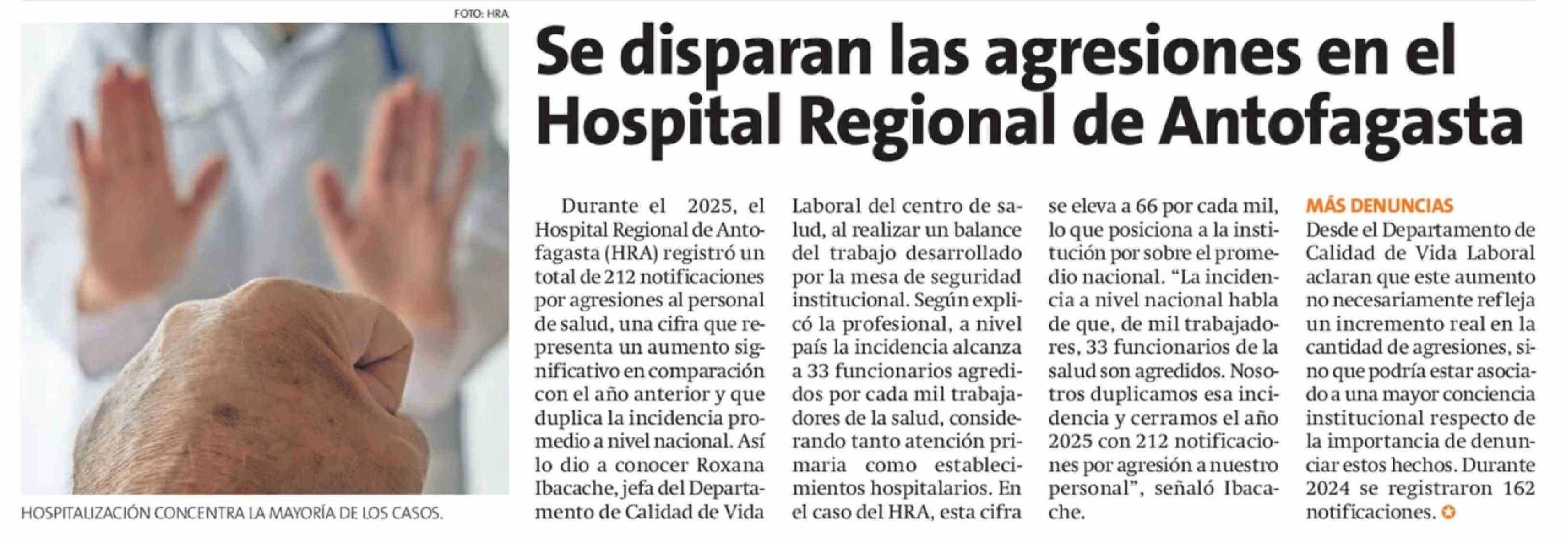 Título: Se disparan las agresiones en el Hospital Regional de Antofagasta