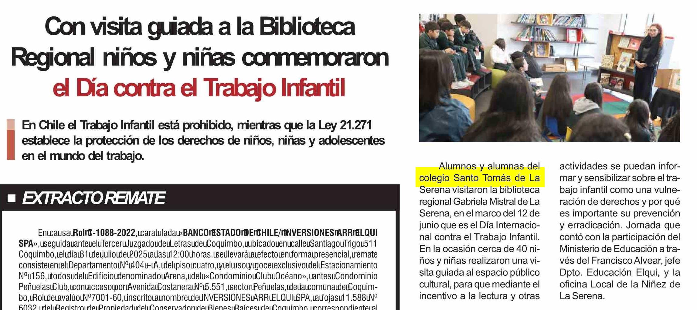 Título: Con visita guiada a la Biblioteca Regional niños y niñas conmemoraron el Día contra el Trabajo Infantil