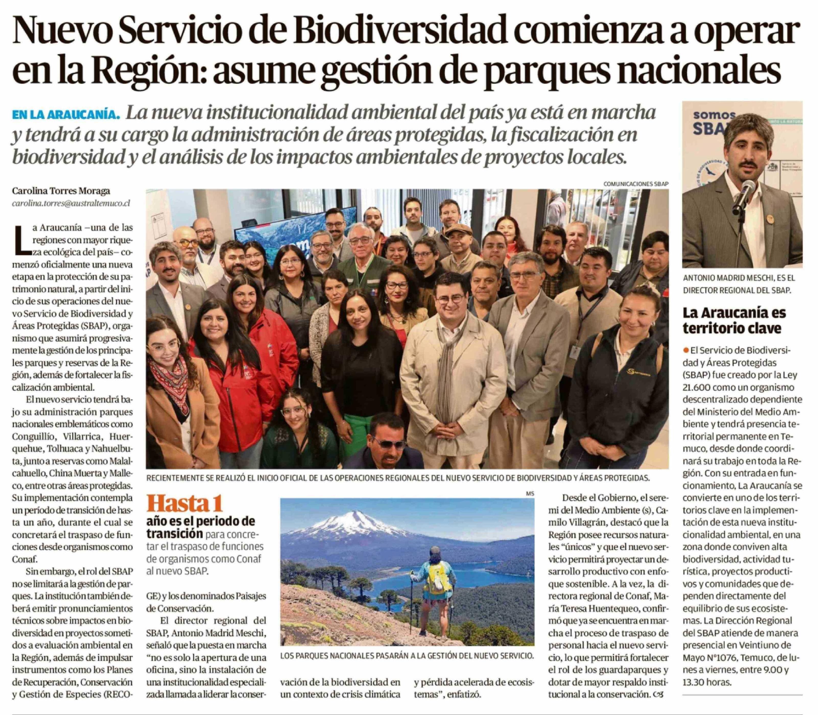 Nuevo Servicio de Biodiversidad comienza a operar en la Región: asume gestión de parques nacionales 16-02-2026 El Austral de la Araucanía |