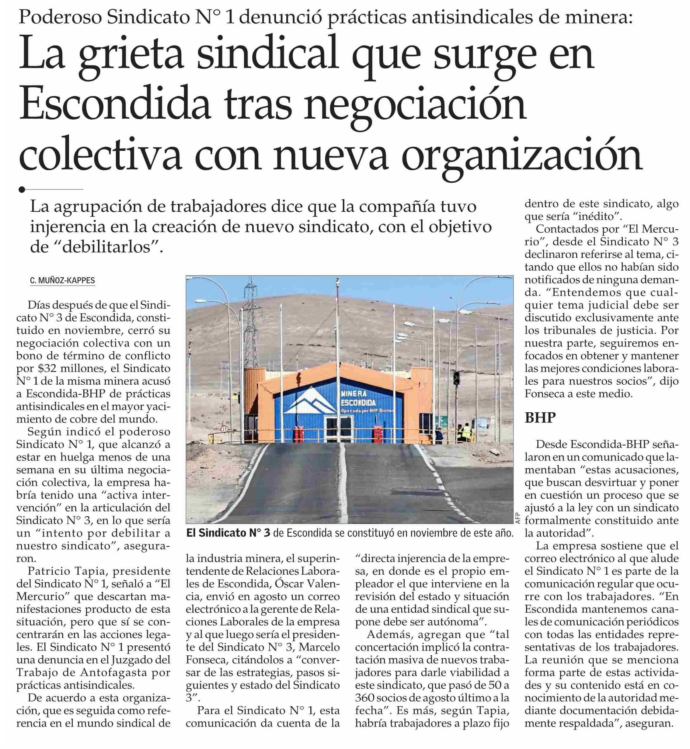 Título: La grieta sindical que surge en Escondida tras negociación colectiva con nueva organización