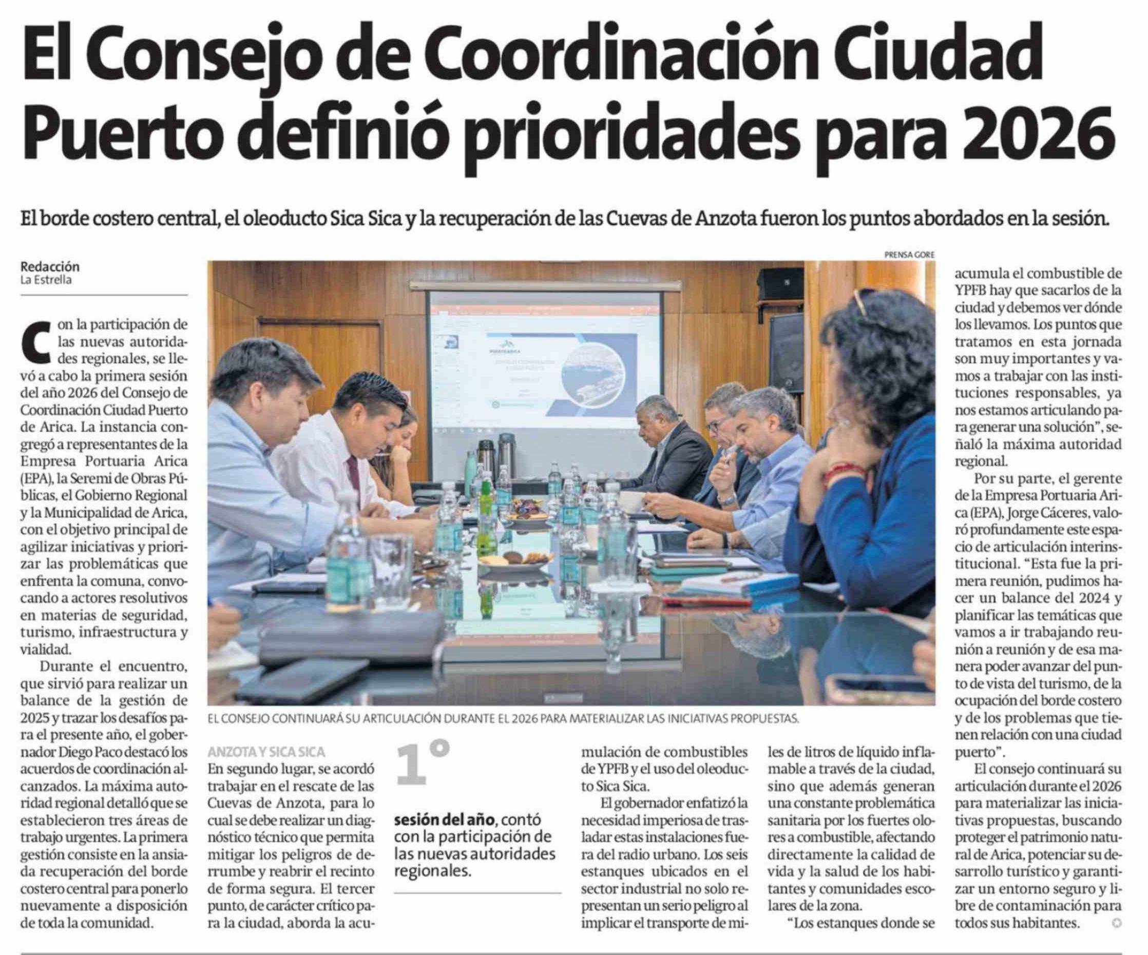 El Consejo de Coordinación Ciudad Puerto definió prioridades para 2026 09-04-2026 La Estrella de Arica |