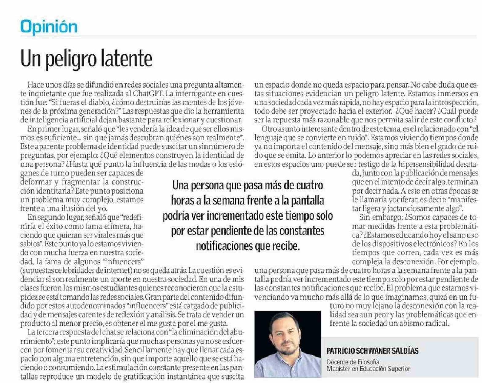 | Título: | COLUMNAS DE OPINIÓN: Un peligro latente |