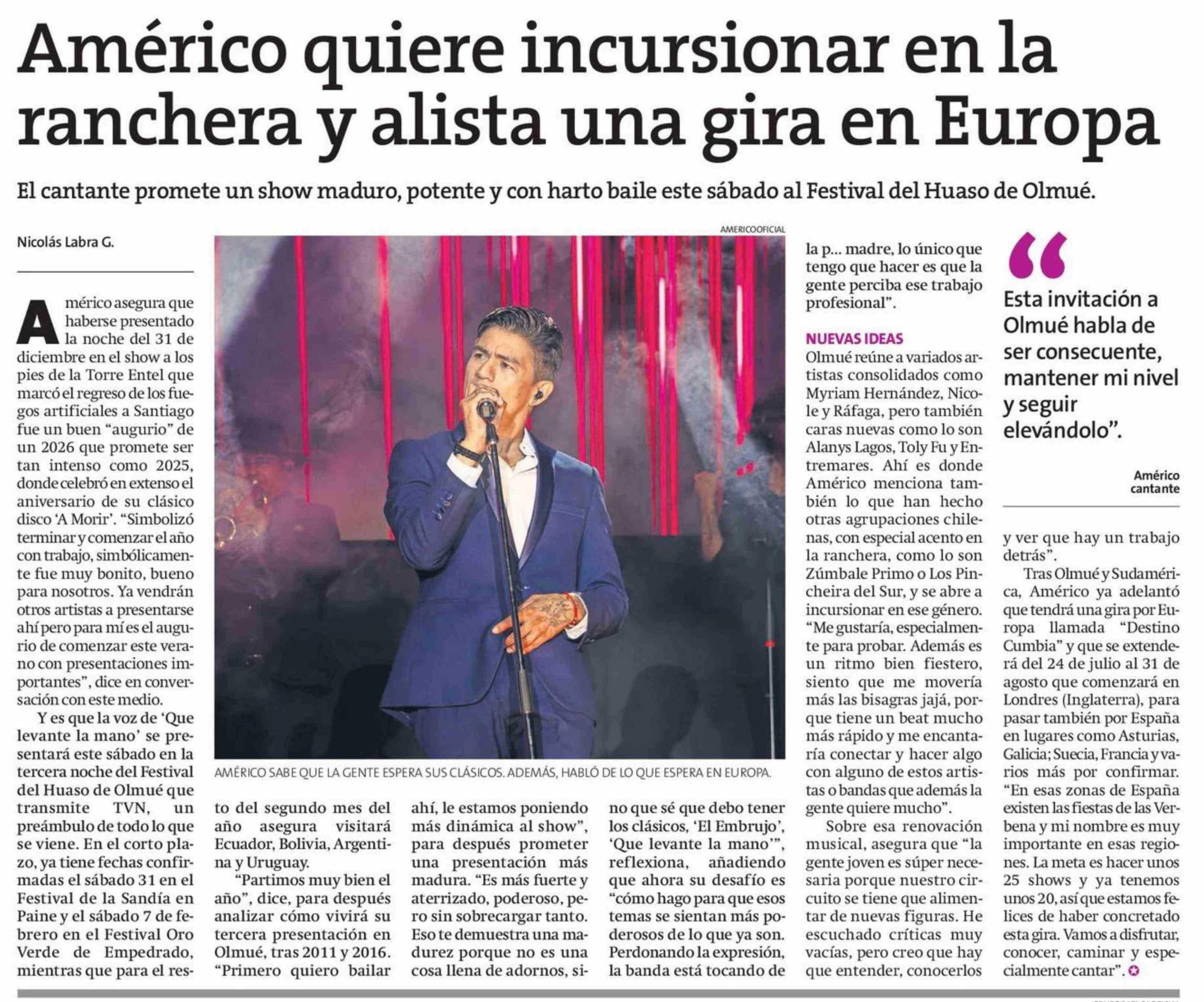 Título: Américo quiere incursionar en la ranchera y alista una gira en Europa