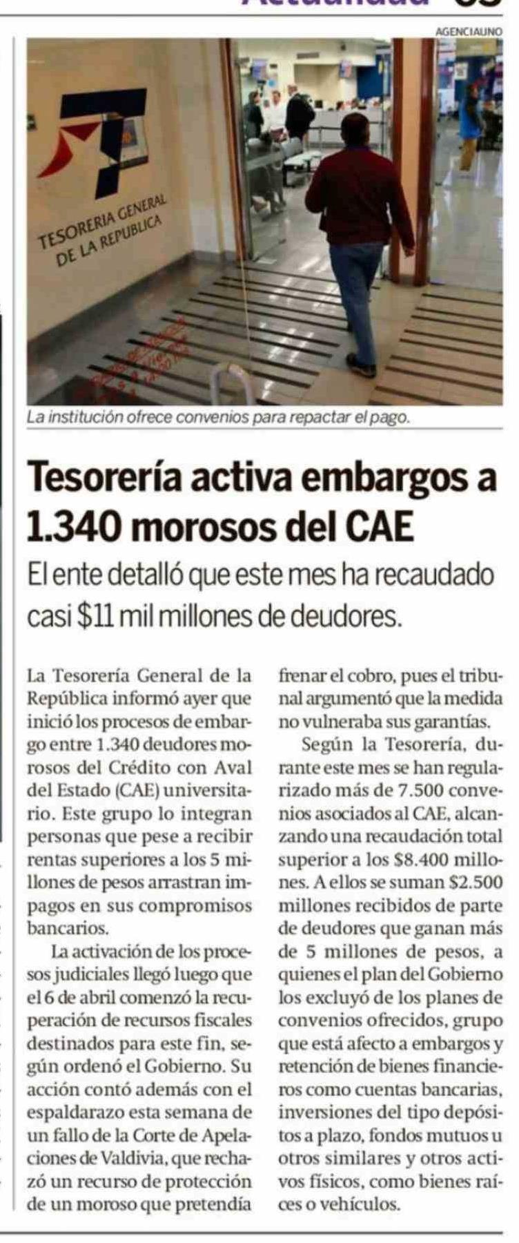 Título: Tesorería activa embargos a 1.340 morosos del CAE