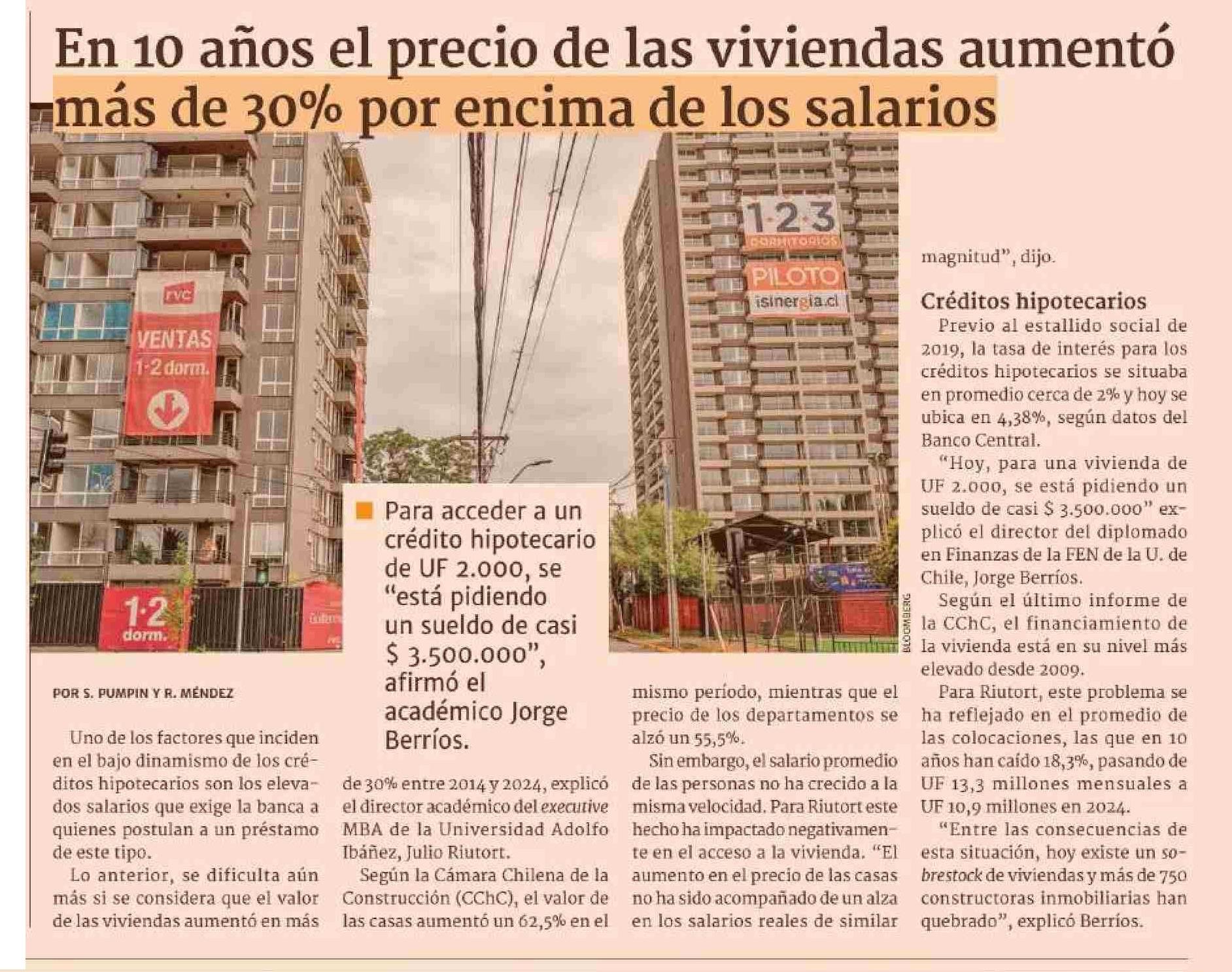 En 10 años el precio de las viviendas aumentó más de 30% por encima de los salarios 26-05-2025 Diario Financiero |