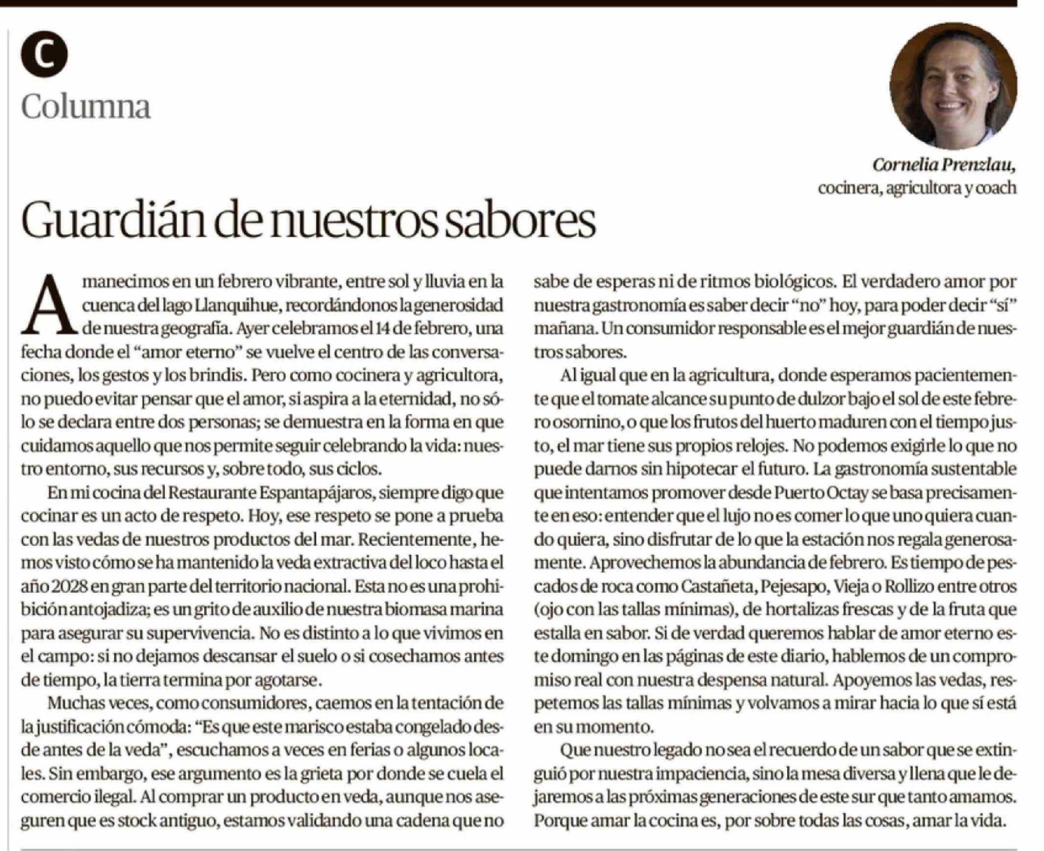 Columnas de Opinión: Guardián de nuestros sabores 15-02-2026 El Austral de Osorno |
