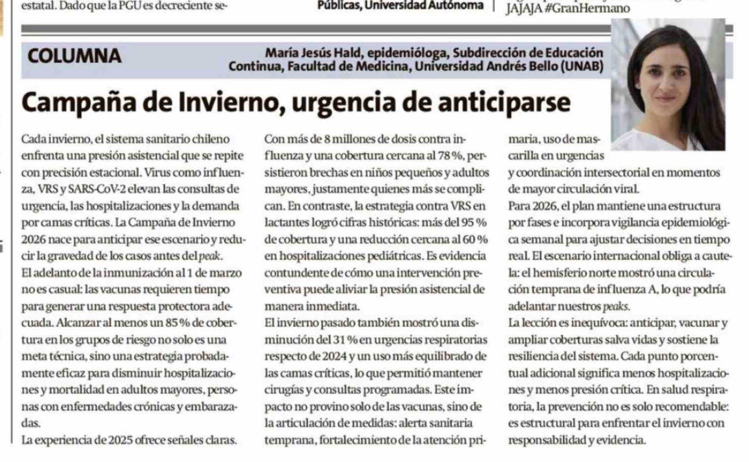 Título: Columnas de Opinión: Campaña de Invierno, urgencia de anticiparse