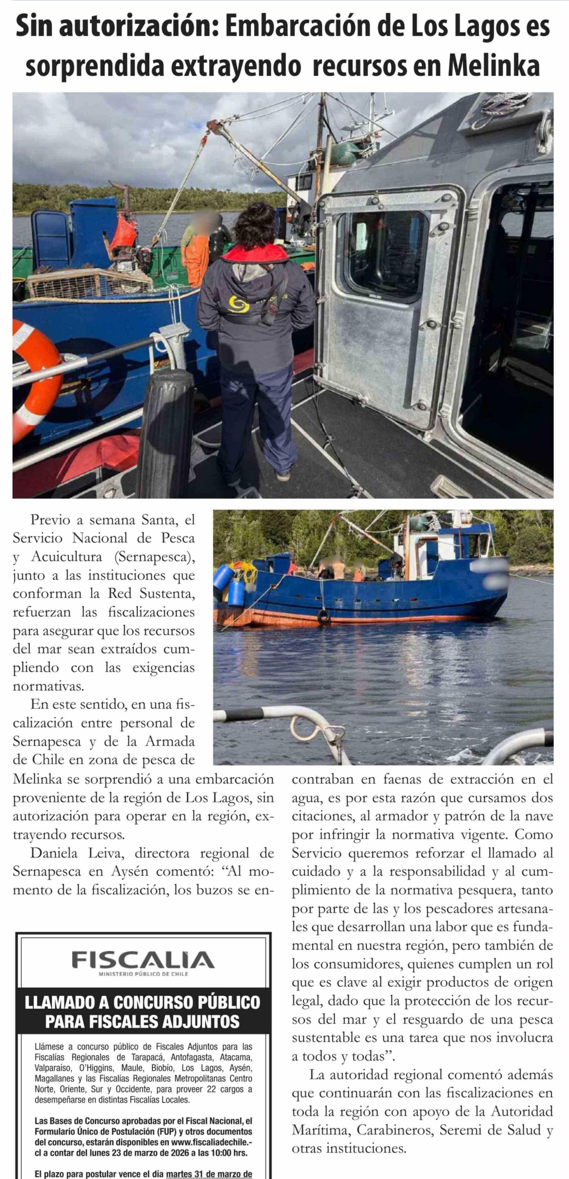 Título: Sin autorización: Embarcación de Los Lagos es sorprendida extrayendo recursos en Melinka