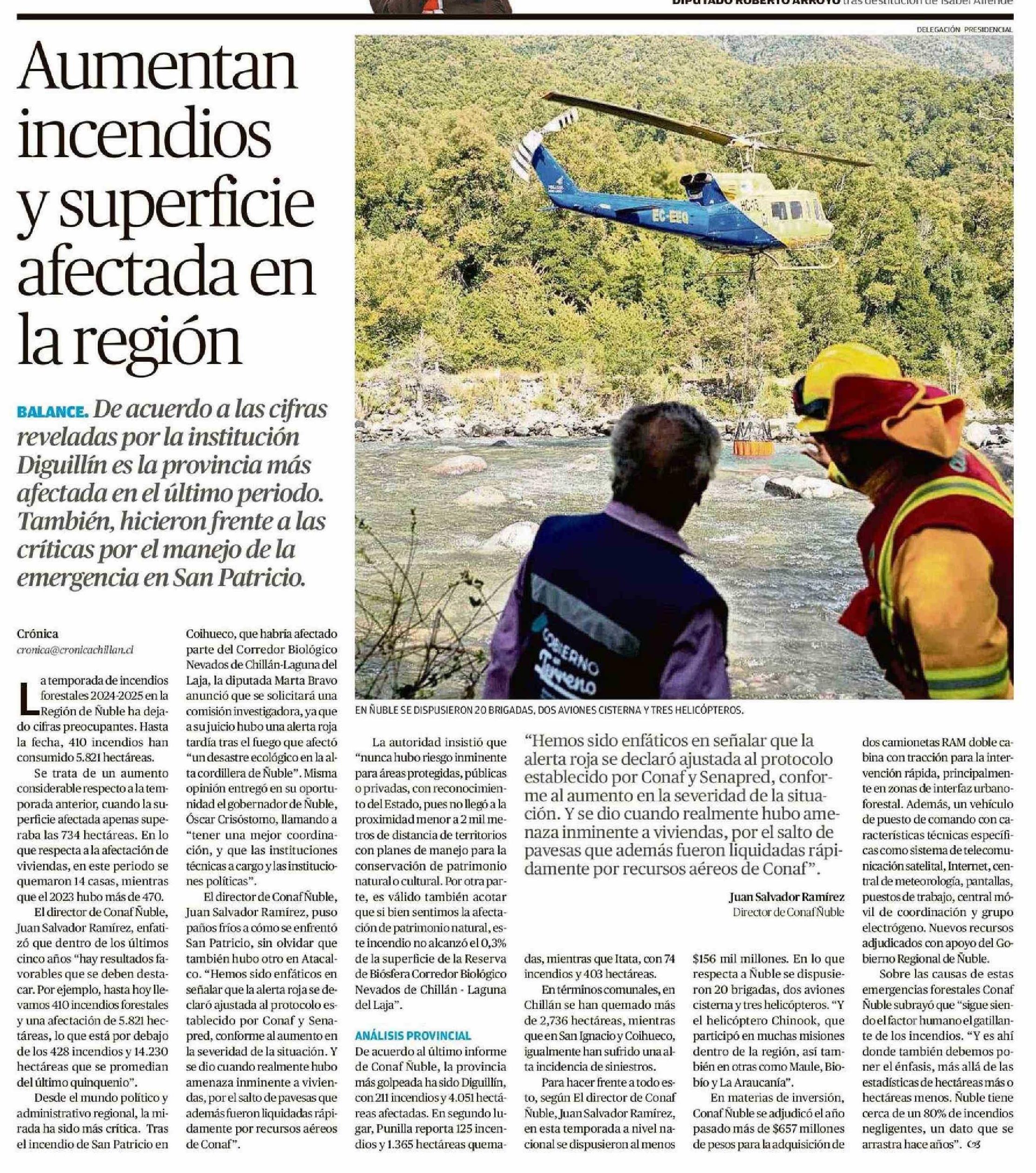 Aumentan incendios afectada en la región y superficie 08-04-2025 Crónica de Chillán |
