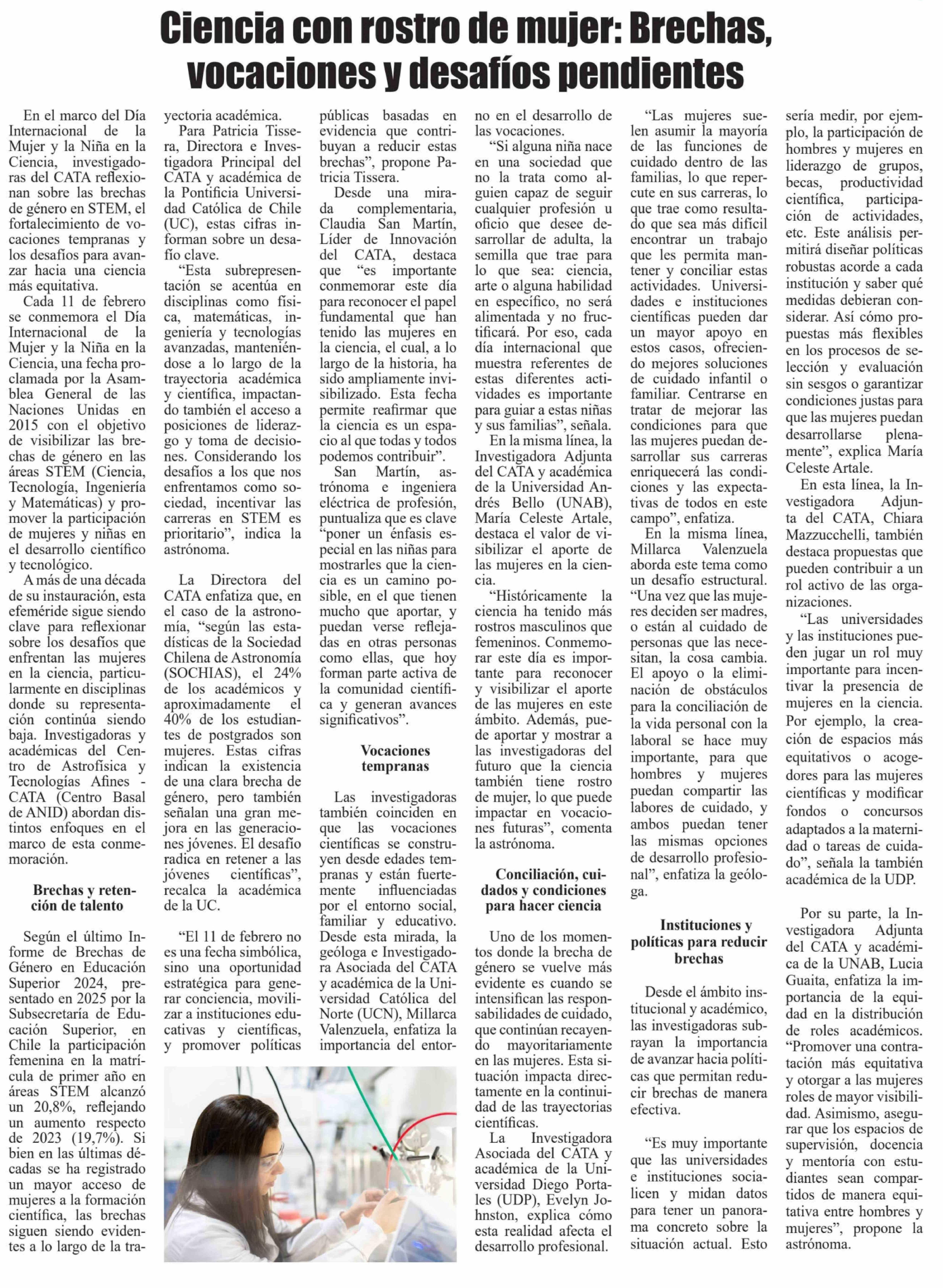 Título: Ciencia con rostro de mujer: Brechas, vocaciones y desafíos pendientes