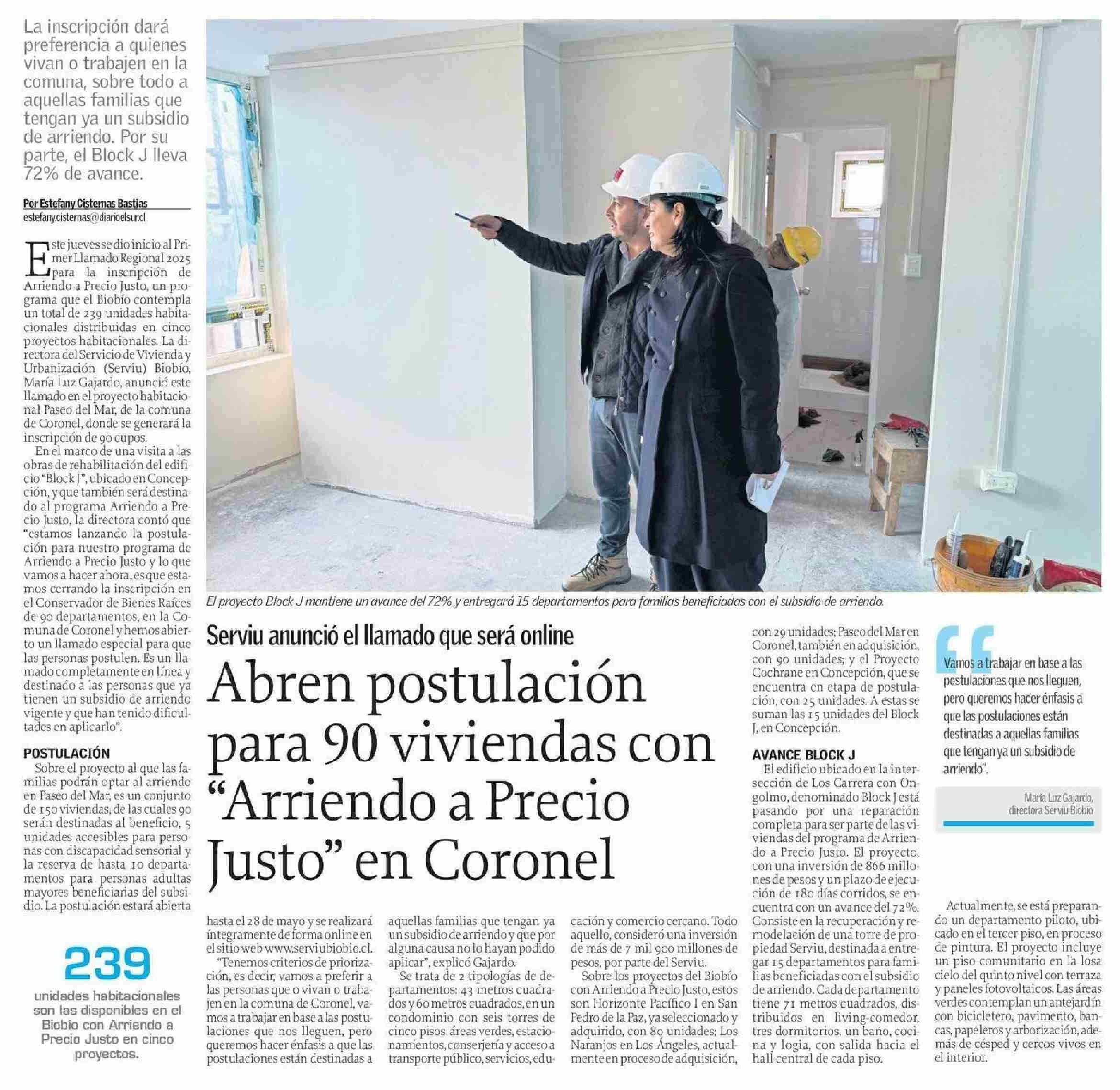 Abren postulación para 90 viviendas con “Arriendo a Precio Justo” en Coronel 23-05-2025 El Sur |
