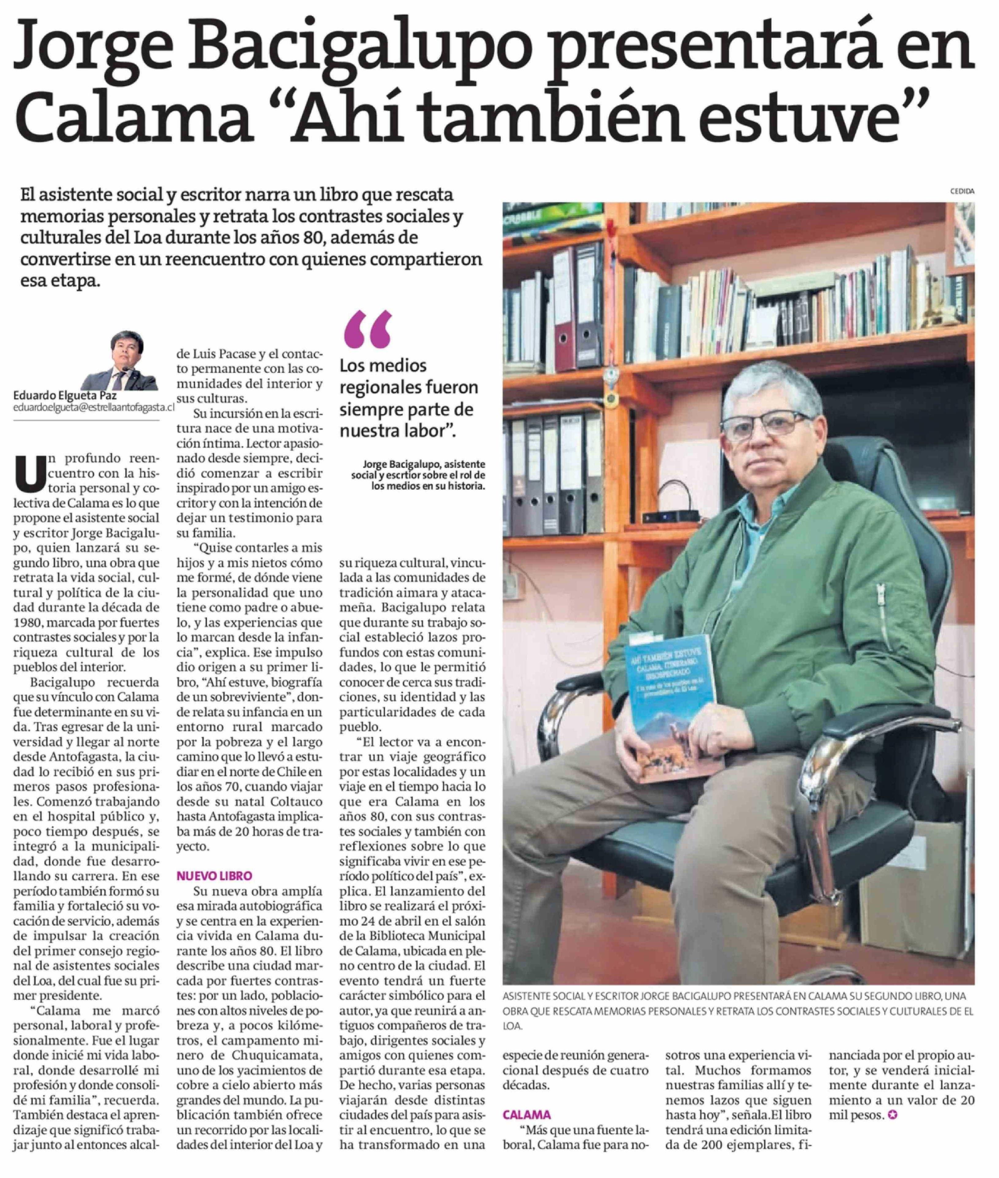 Título: Jorge Bacigalupo presentará en Calama "Ahí también estuve"