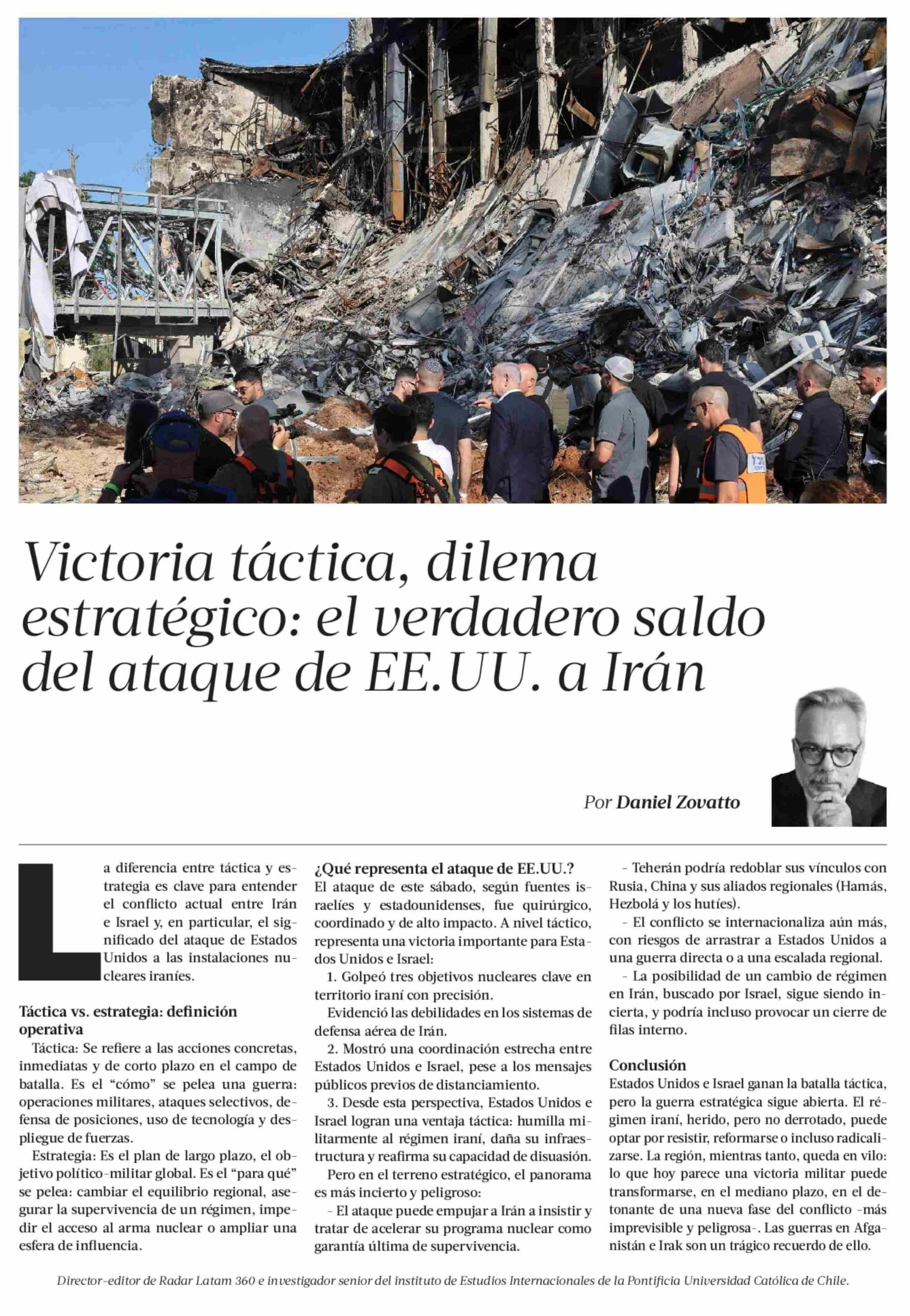 Victoria táctica, dilema estratégico: el verdadero saldo del ataque de EE.UU. a Irán 23-06-2025 La Tercera |