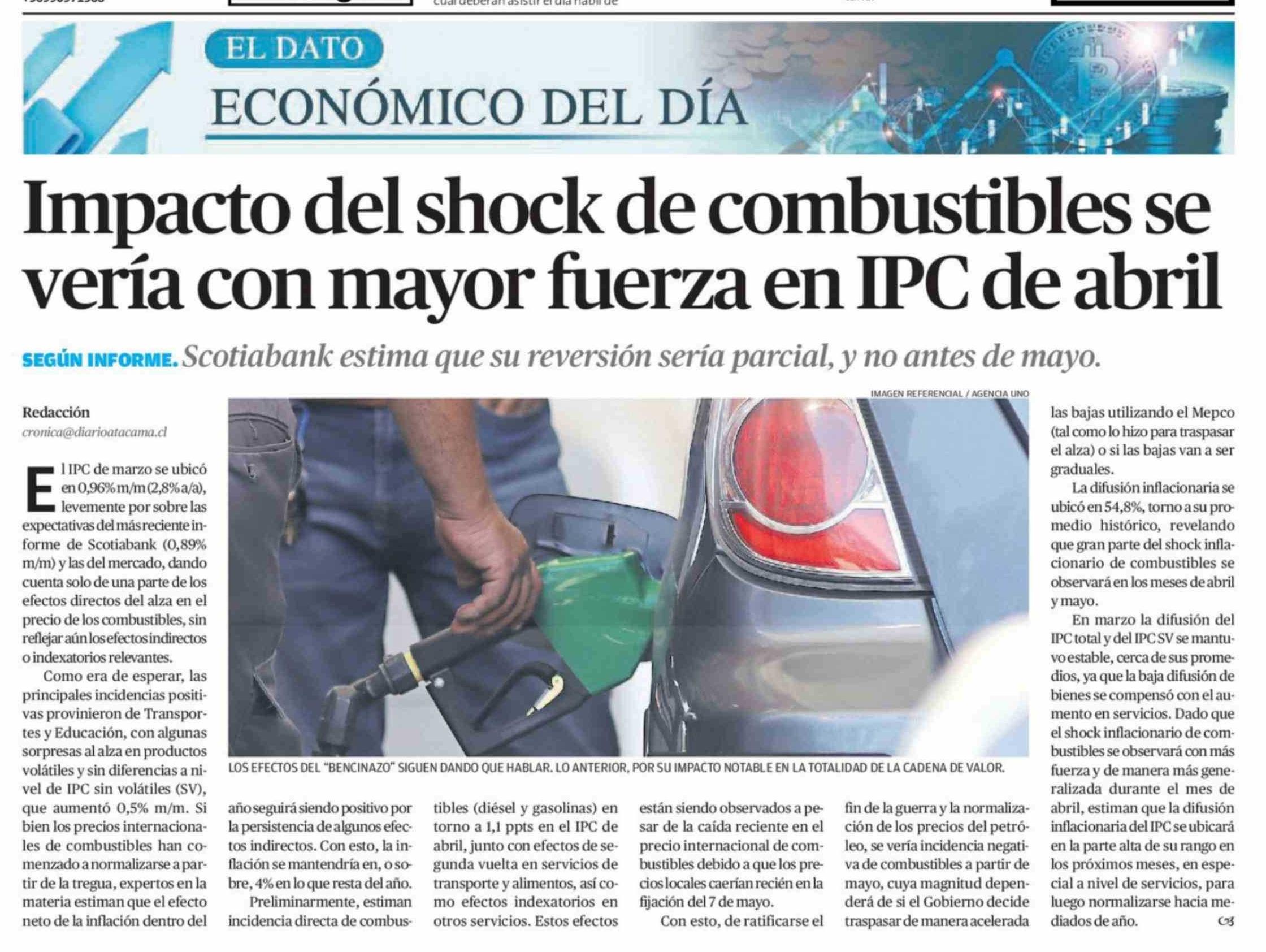 Impacto del shock de combustibles se vería con mayor fuerza en IPC de abril 09-04-2026 El Diario de Atacama |