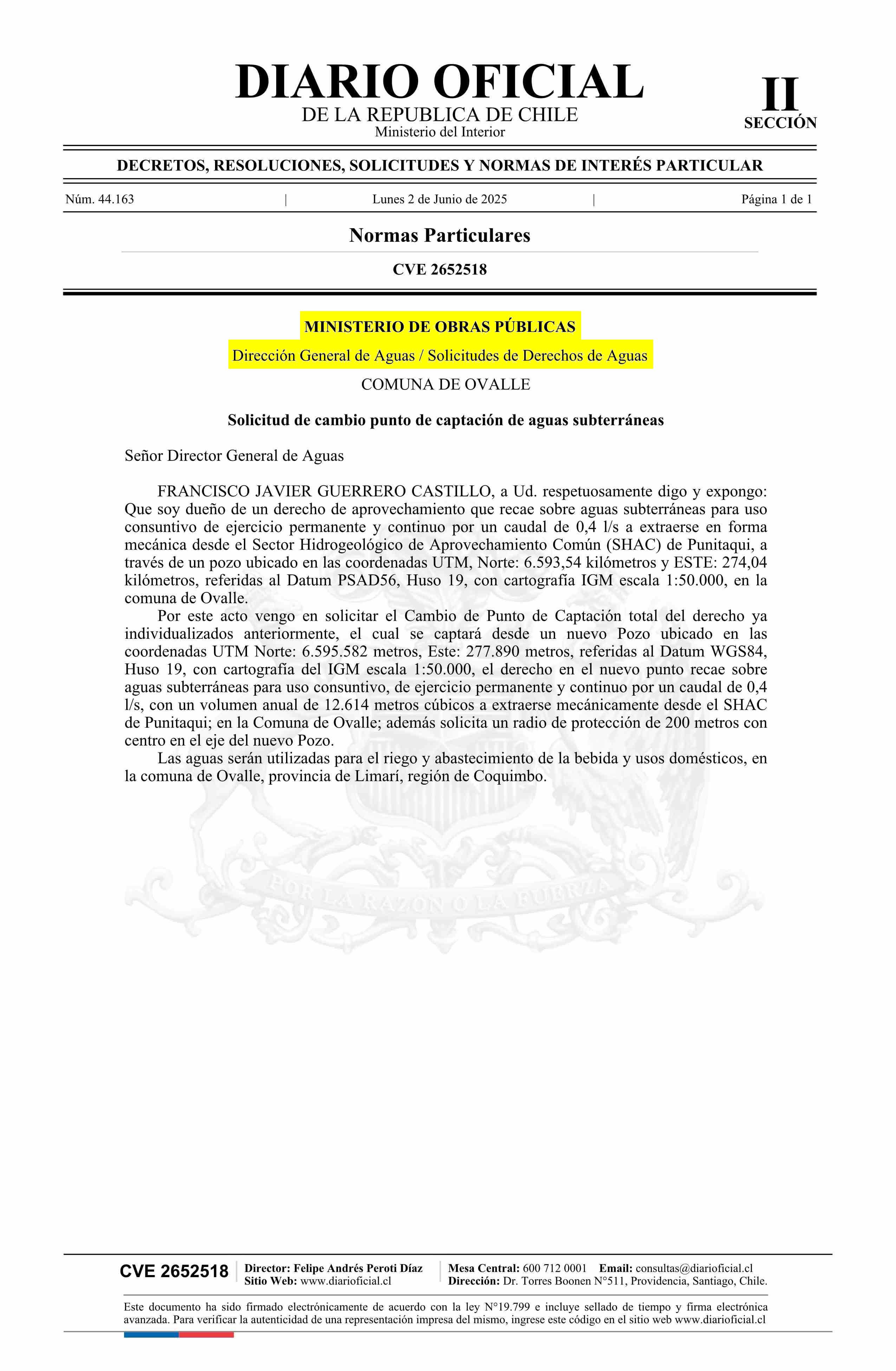 Solicitud Guerrero Castillo Francisco Javier 02-06-2025 Diario Oficial Edición Electrónica |