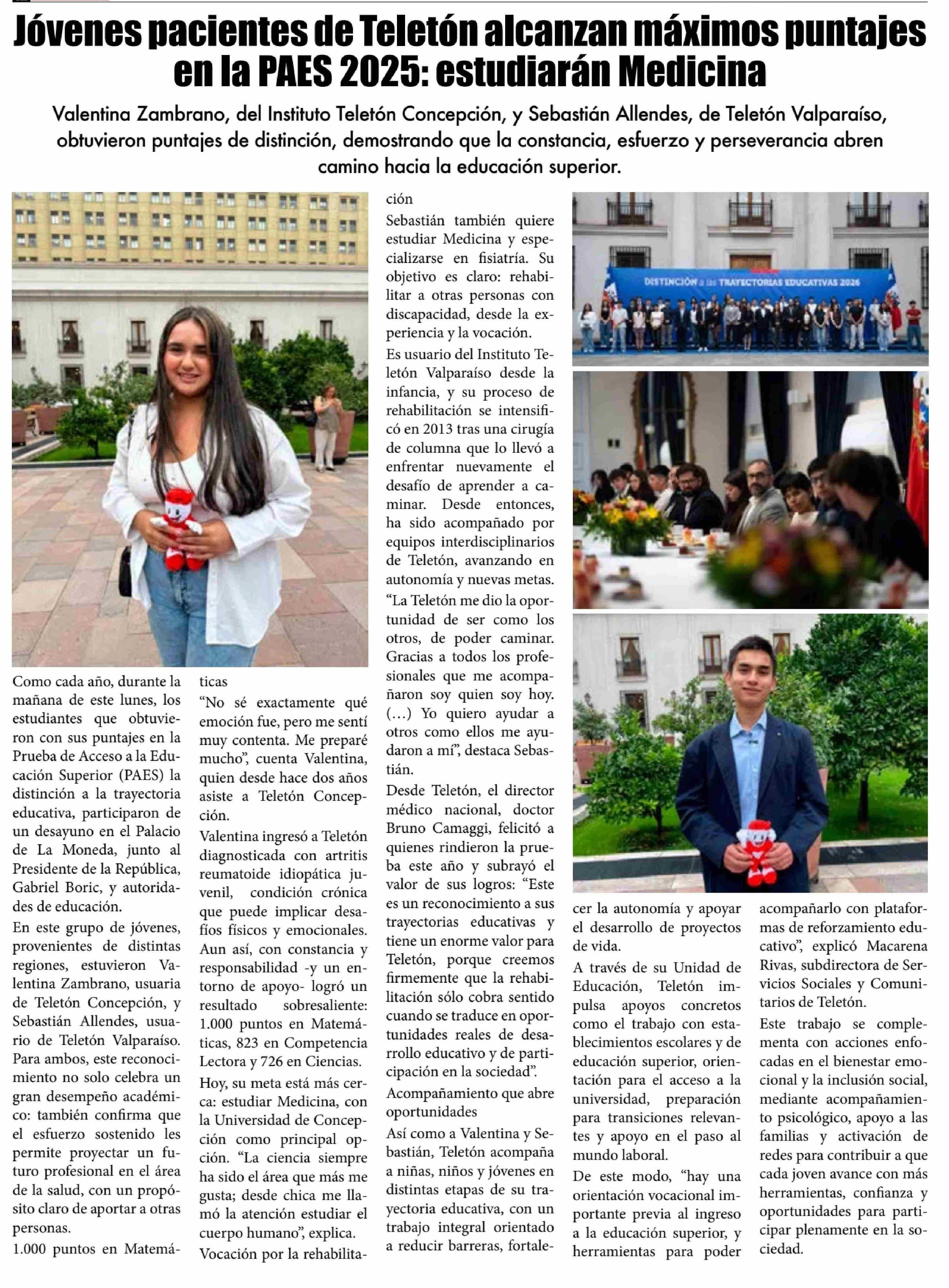 Título: Jóvenes pacientes de Teletón alcanzan máximos puntajes en la PAES 2025: estudiaran Medicina