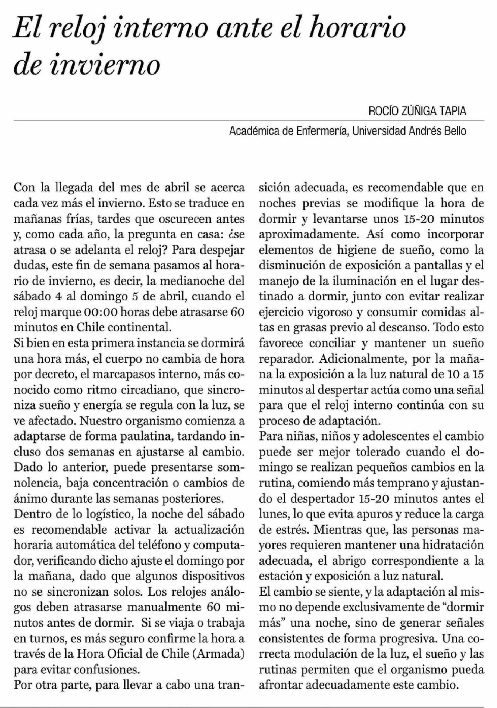 Cartas: El reloj interno ante el horario de invierno 01-04-2026 La Prensa de Curicó |