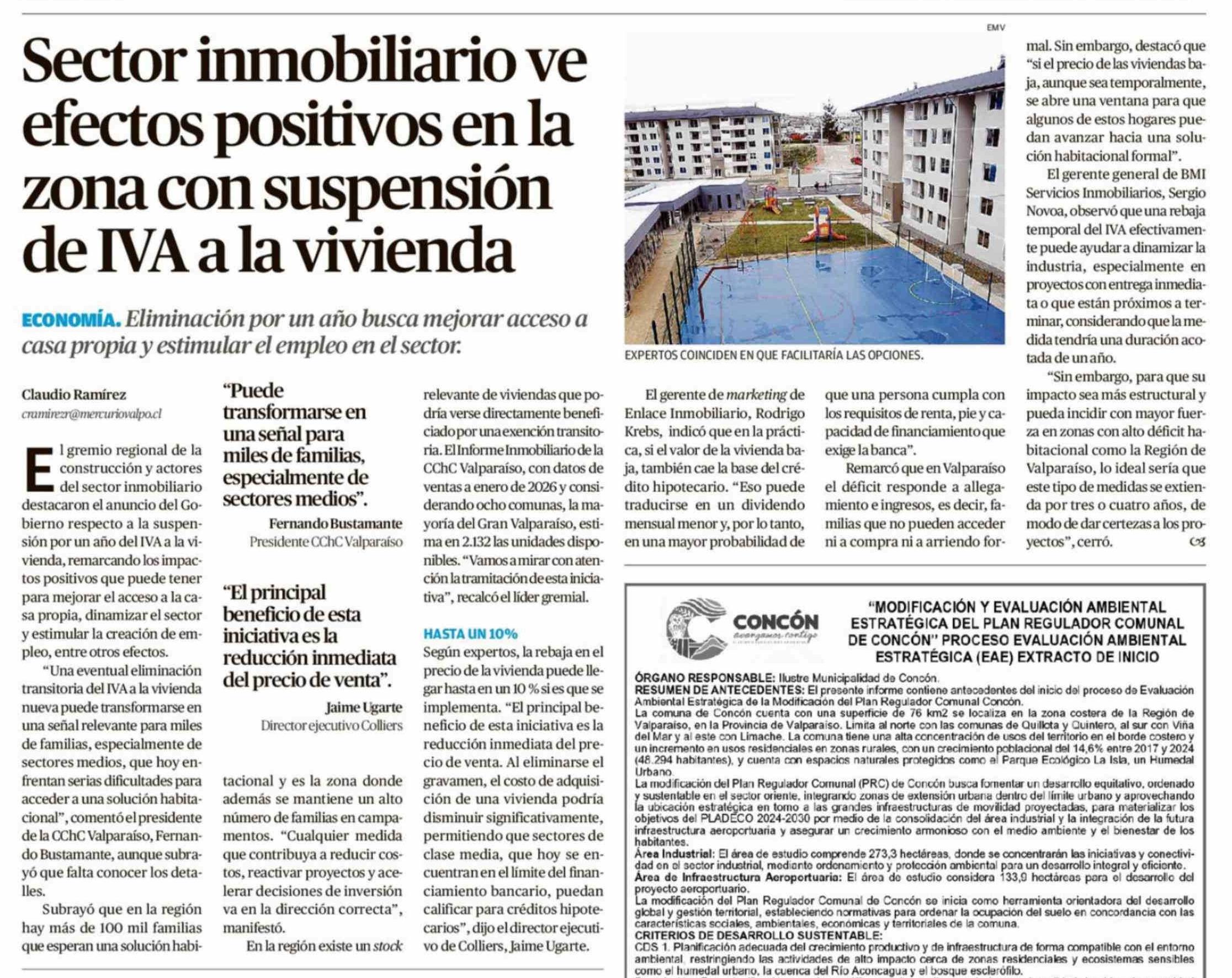 Título: Sector inmobiliario ve efectos positivos en la zona con suspensión de IVA a la vivienda