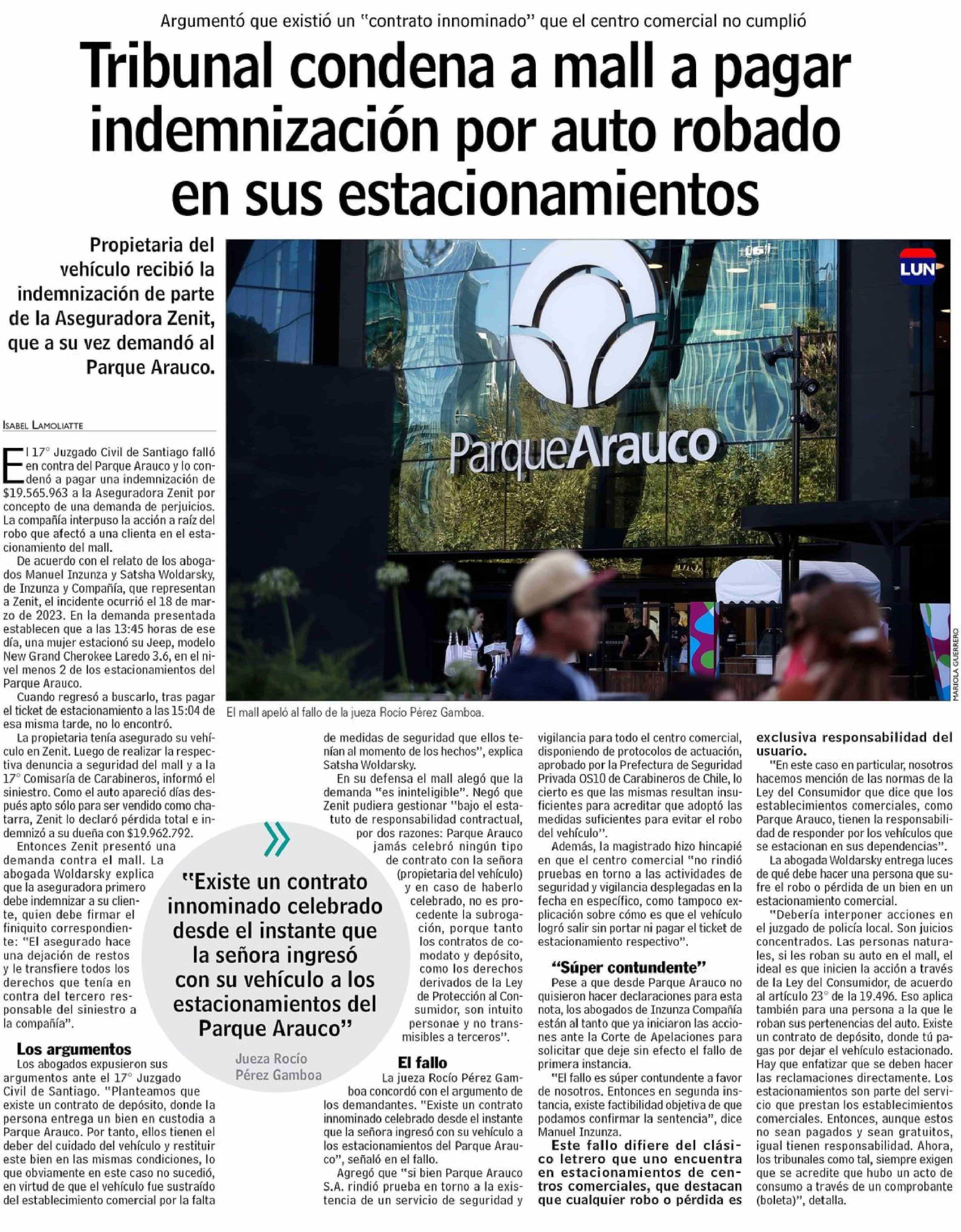 | Título: | Tribunal condena a mall a pagar indemnización por auto robado en sus estacionamientos |