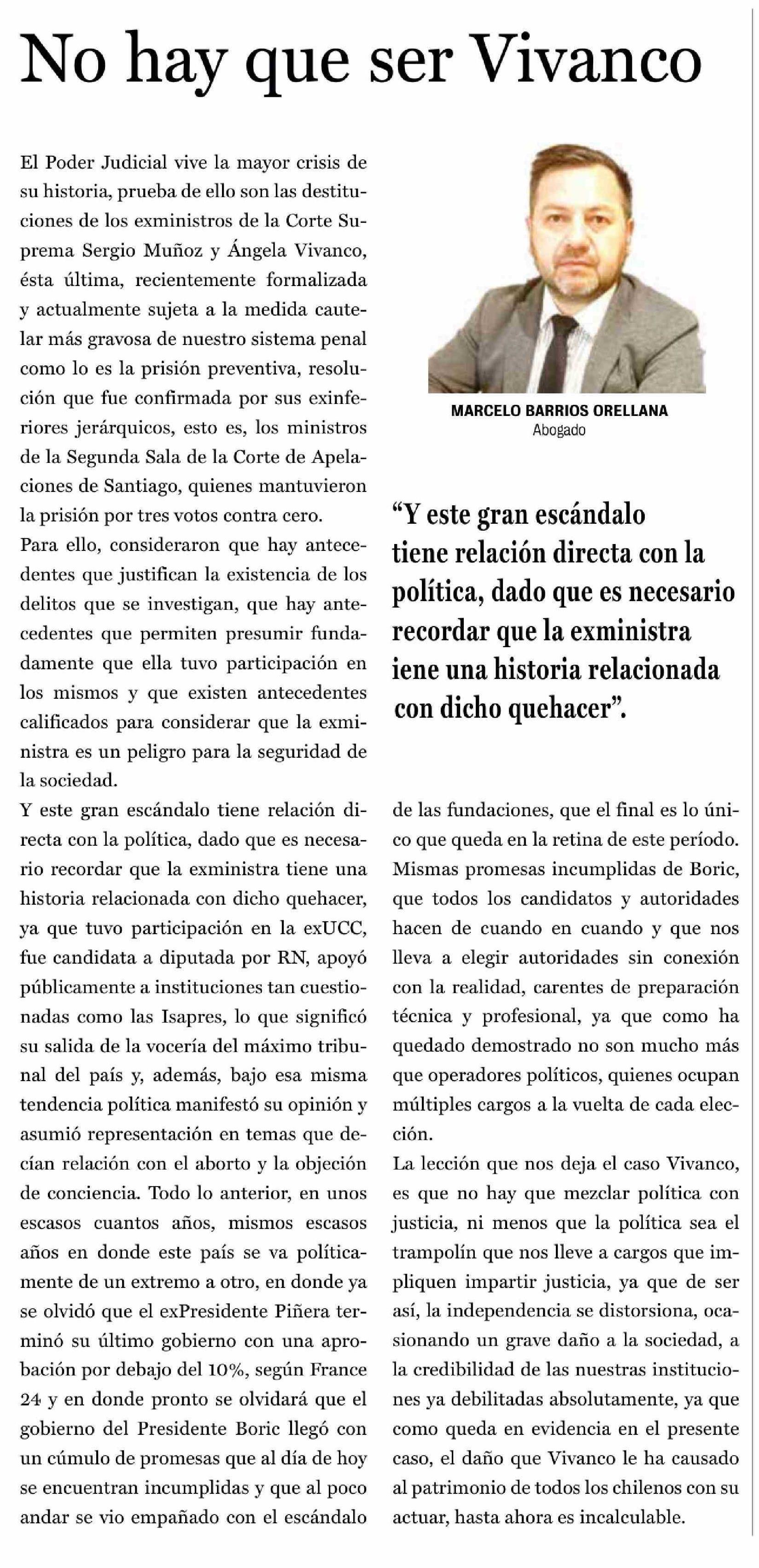 Título: Columnas de Opinión: No hay que ser Vivanco