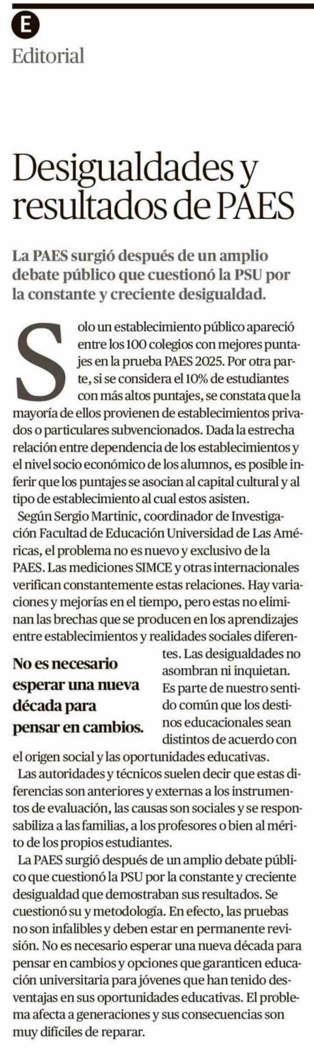 Editorial: Desigualdades y resultados de PAES 24-01-2026 Crónica de Chillán |