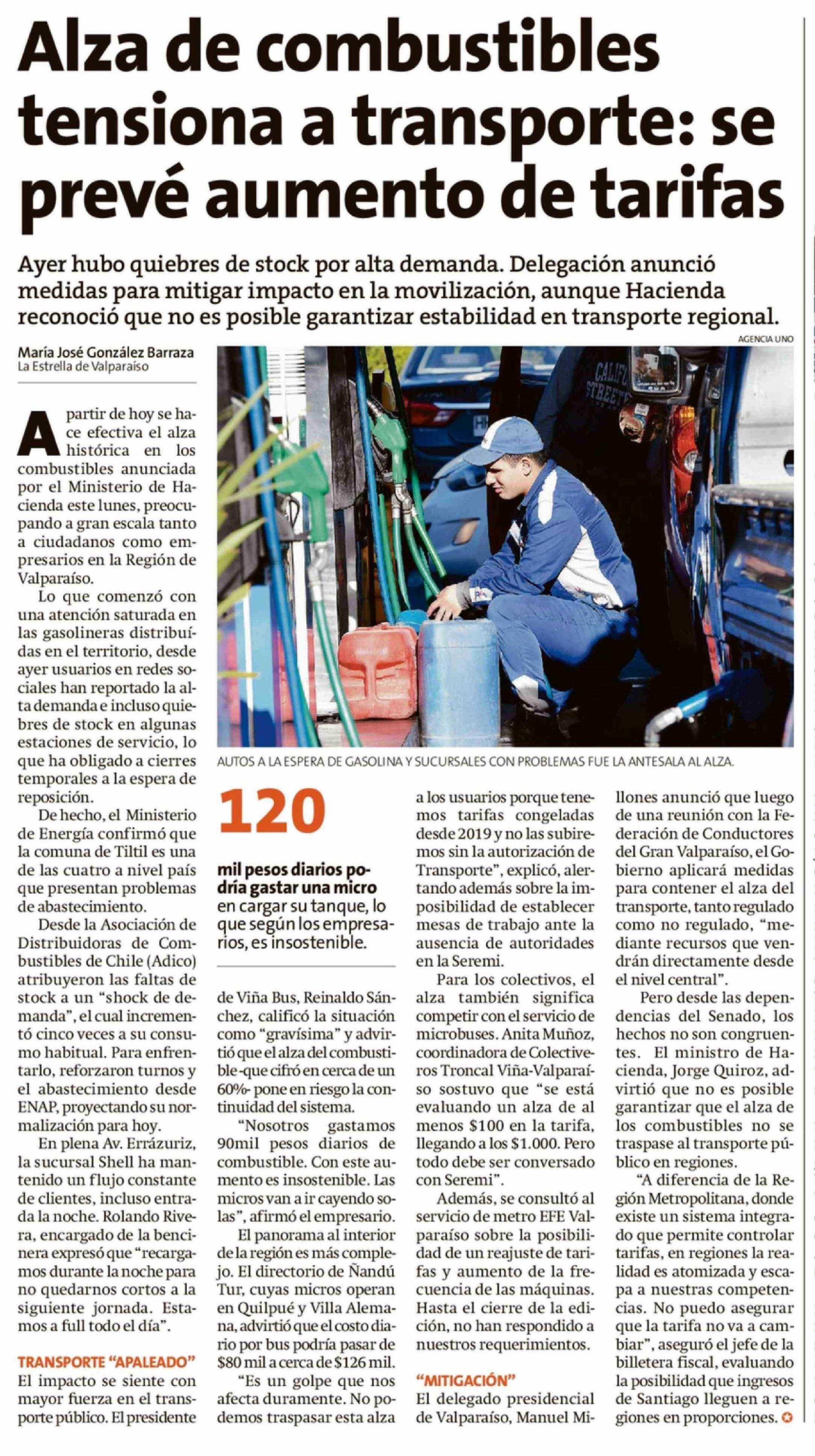 Título: Alza de combustibles tensiona a transporte: se prevé aumento de tarifas