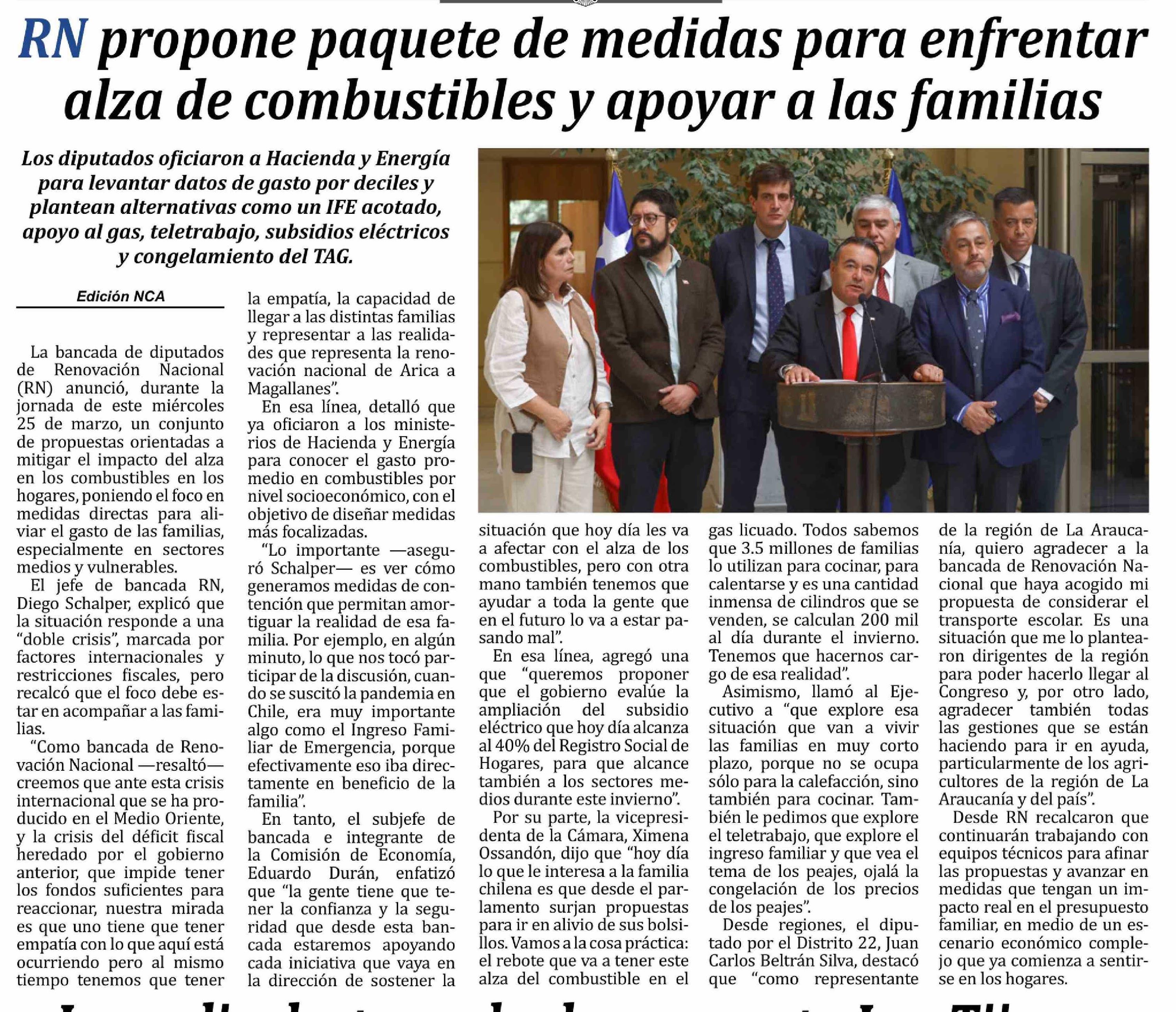 Título: RN propone paquete de medidas para enfrentar alza de combustibles y apoyar a las familias