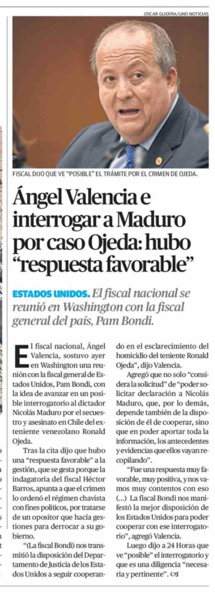 Ángel Valencia e interrogar a Maduro por caso Ojeda: hubo "respuesta favorable" 17-03-2026 El Mercurio de Antofagasta |