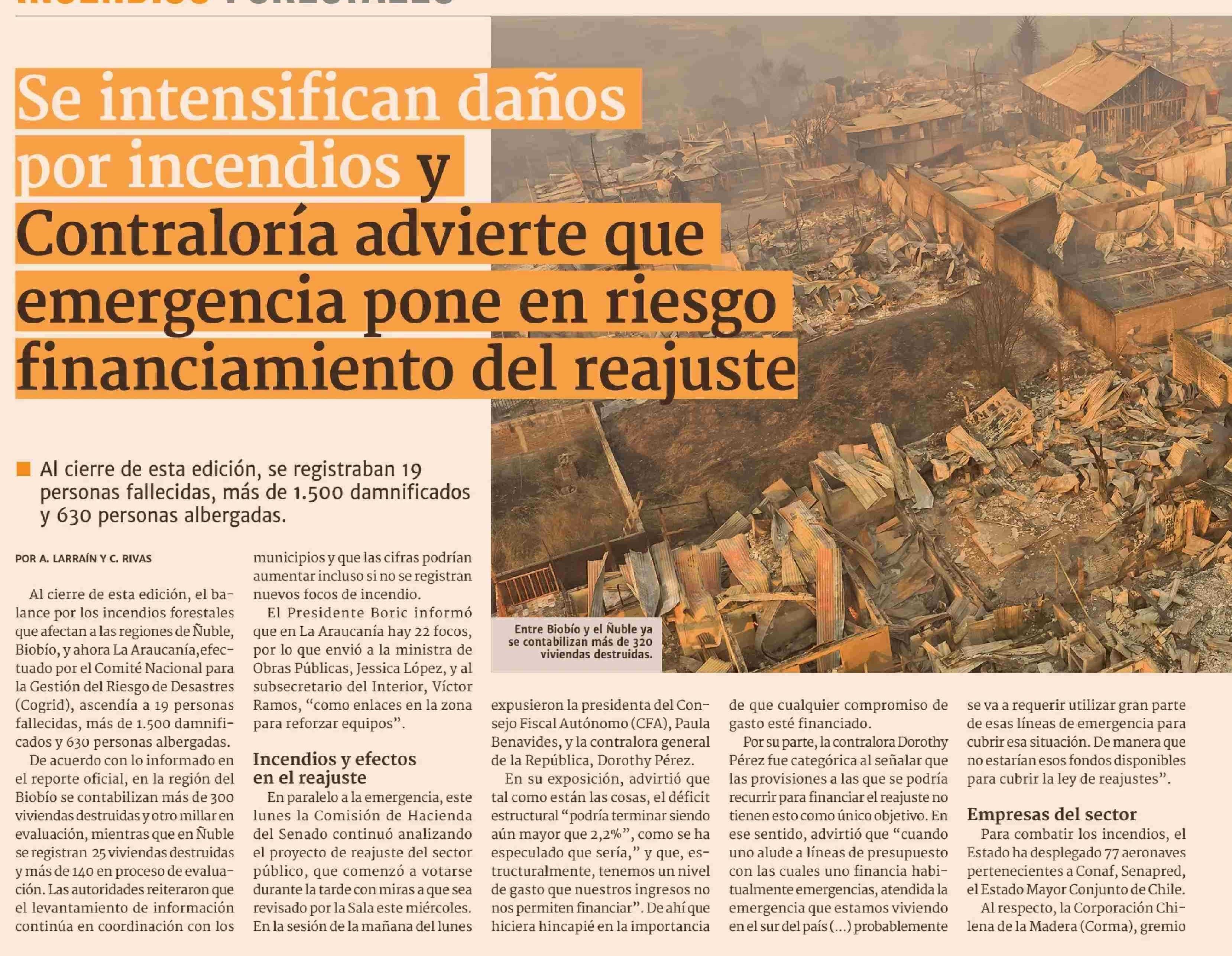 Se intensifican daños por incendios y Contraloría advierte que emergencia pone en riesgo financiamiento del reajuste 20-01-2026 Diario Financiero |