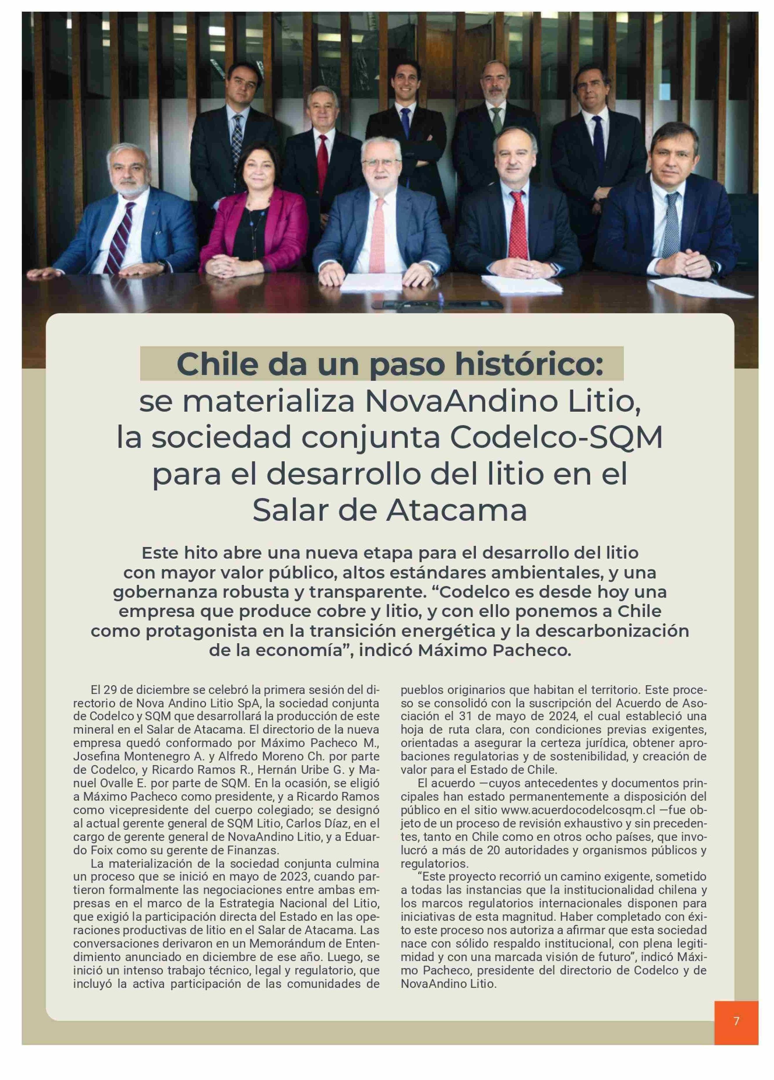 | Título: | Chile da un paso histórico: se materializa NovaAndino Litio, la sociedad conjunta Codelco-SQM para el desarrollo del litio en el Salar de Atacama |